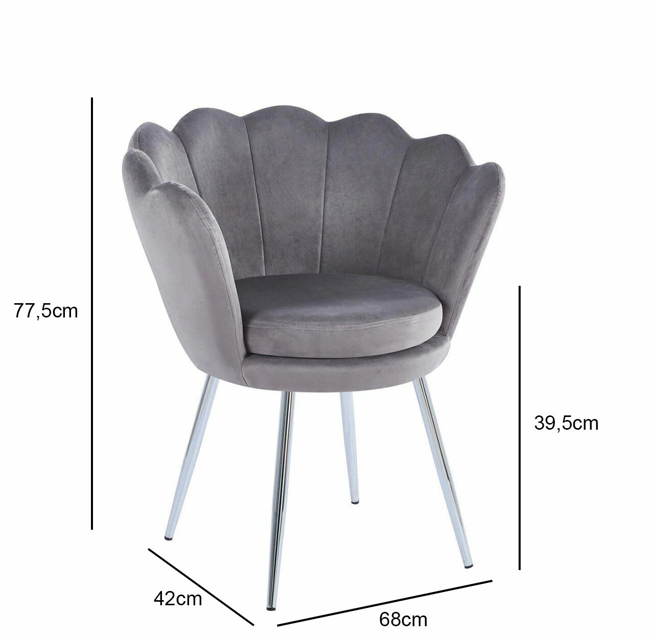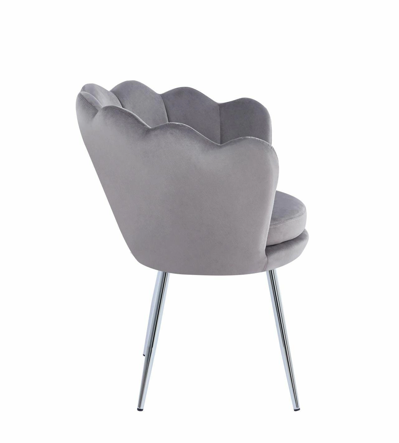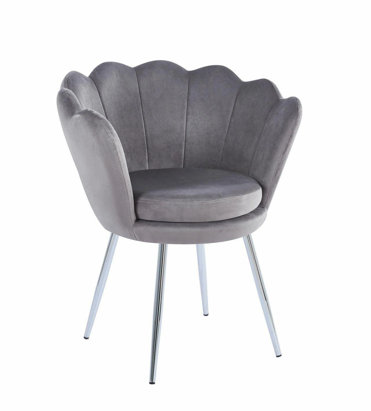 Krzesło muszelka Fiona VIC w kolorze szarym to nie tylko elegancki dodatek do każdego wnętrza, ale także praktyczne i wygodne siedzisko. Dzięki swojemu ergonomicznemu kształtowi oraz miękkiej tapicerce z weluru zapewnia komfort podczas długich godzin siedzenia. Solidne nogi w kolorze srebrnym zapewniają stabilność i trwałość, jednocześnie dodając subtelny akcent designerski do całości.