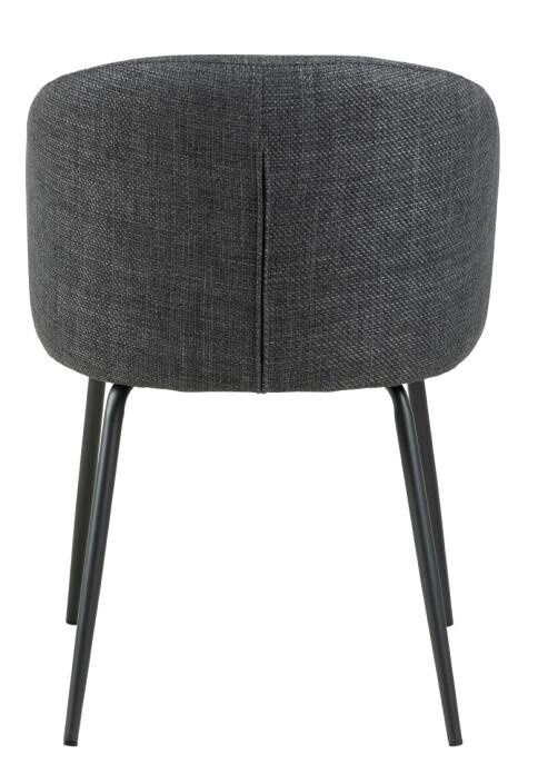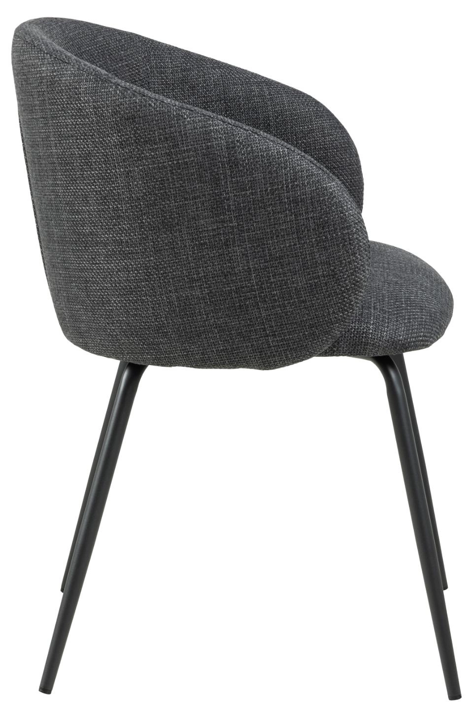 Krzesło Eleanor w kolorze szarym ciemnym to doskonały wybór zarówno na specjalne okazje, jak i do codziennych posiłków w jadalni. Wyjątkowe krzywizny siedziska oraz smukłe nogi z czarnej stali nadają temu krzesłu kobiecy i elegancki wygląd. Ciemnoszare obicie pokryte strukturalną tkaniną z efektem dwóch odcieni sprawia, że krzesło jest nie tylko estetyczne, ale także interesujące dla oka.