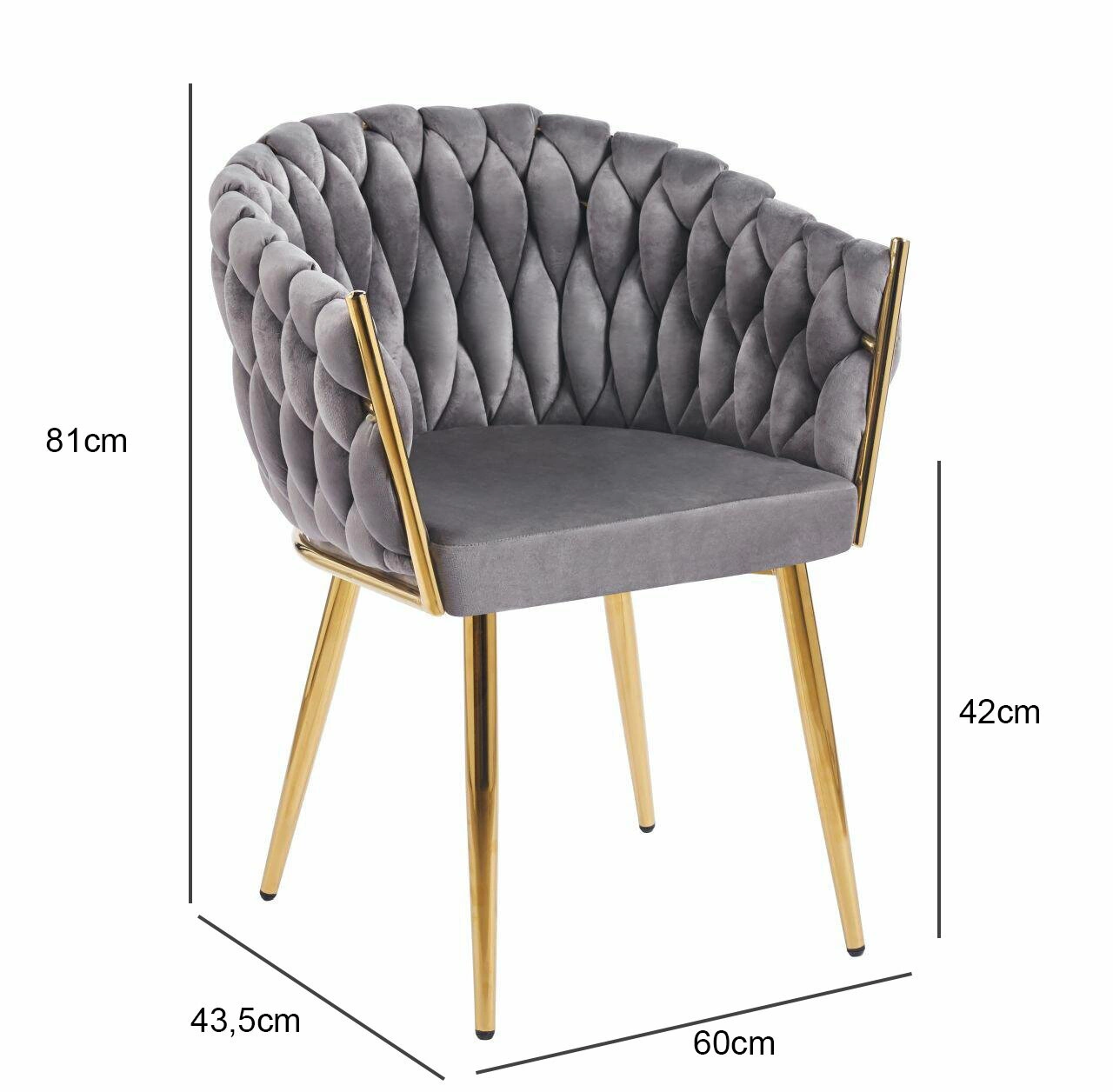 Krzesło Malaya Velvet to połączenie wygody i stylu. Szare siedzisko wykonane z miękkiego i przyjemnego w dotyku materiału velvet zapewnia komfort podczas siedzenia, a złote nogi dodają elegancji i szyku. Krzesło o wymiarach 60 cm szerokości, 81 cm wysokości, 49 cm szerokości siedziska i 43,5 cm głębokości siedziska, idealnie wpasuje się zarówno do nowoczesnych, jak i klasycznych wnętrz. Dzięki swoim proporcjom, krzesło Malaya Velvet doskonale sprawdzi się w jadalni, salonie czy biurze.