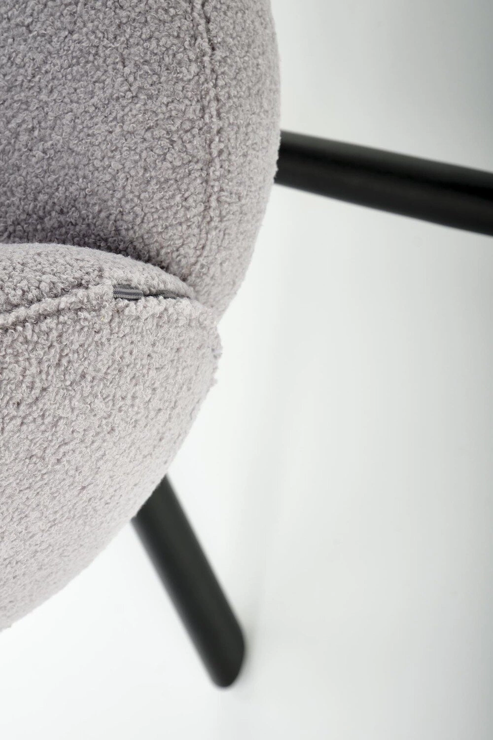 Materiały: Wykonane z tkaniny bouclé i proszkowo malowanej stali krzesło jest zarówno luksusowe, jak i komfortowe.