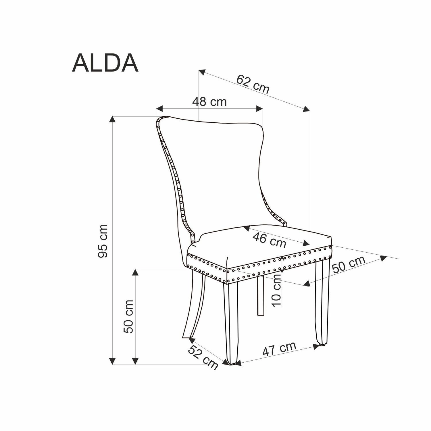 - Krzesło ma optymalne wymiary (50 cm szerokości, 62 cm głębokości, 95 cm wysokości, 50 cm wysokości siedziska)