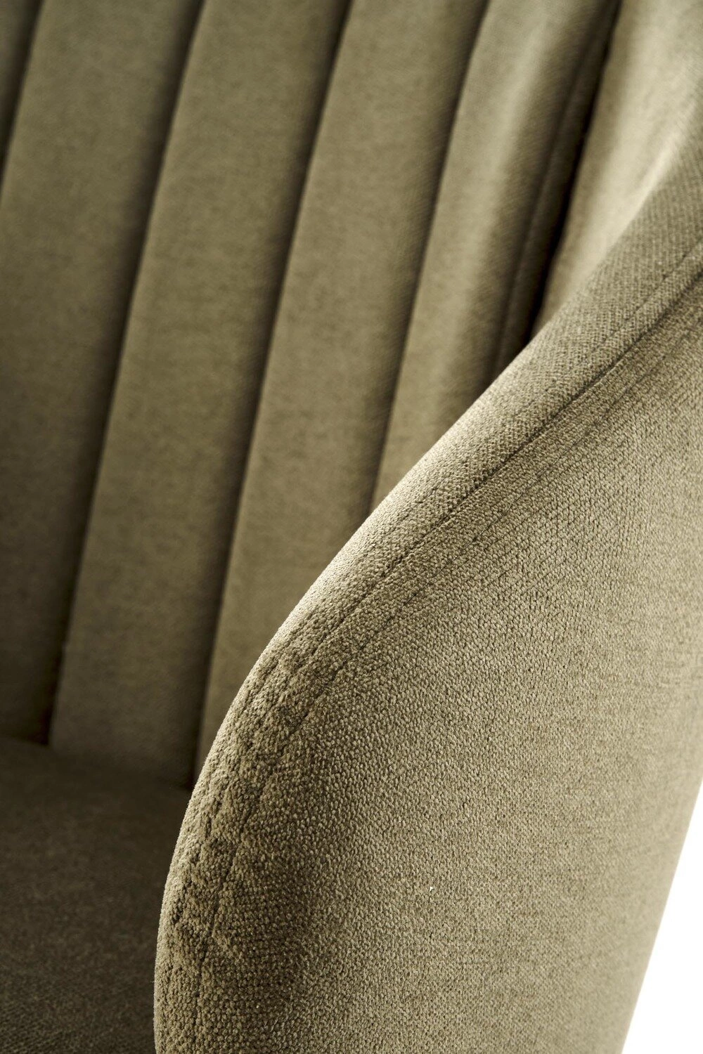 - Krzesło Arnadine w oliwkowym kolorze wyróżnia się eleganckim wyglądem dzięki połączeniu tkaniny HAVANA i malowanej proszkowo stali