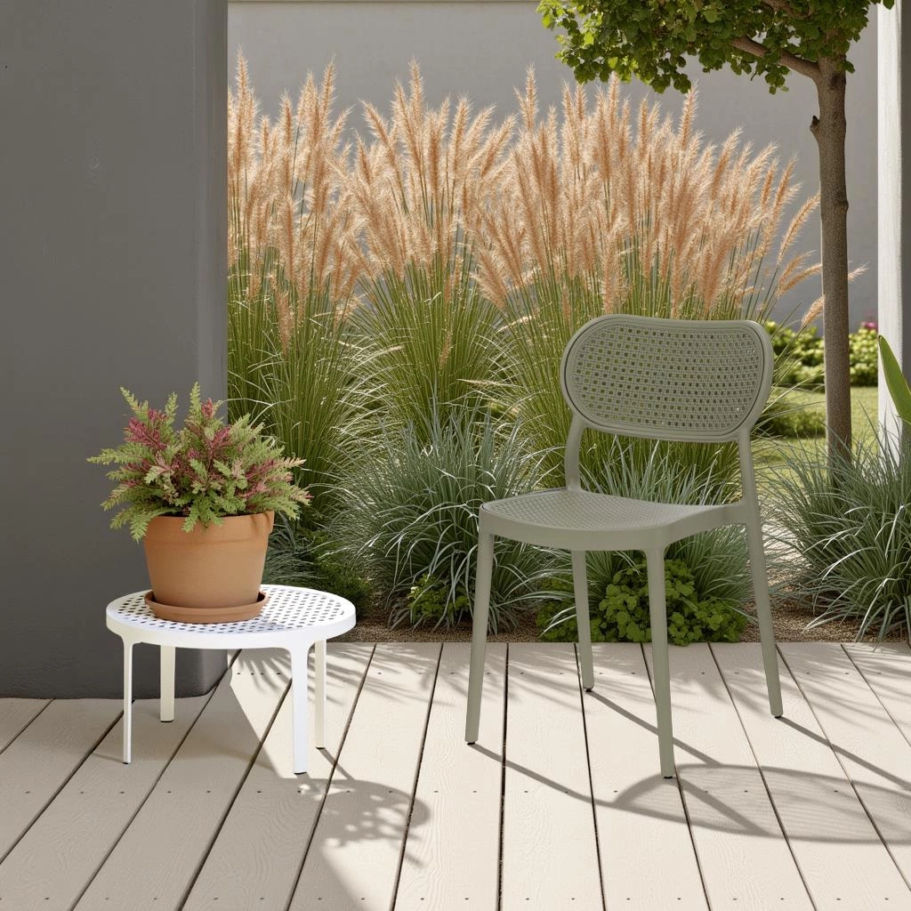 Chcesz dodać do swojego ogrodu lub tarasu mebel, który łączy w sobie funkcjonalność, wytrzymałość i styl? Wybierz zielone krzesło Bilto. Wykonane z polipropylenu odpornego na promienie UV, jest nie tylko praktyczne, ale także estetycznie wykonane. Jego minimalistyczny design z lekko zaokrąglonym oparciem sprawi, że będzie pasować do każdego stylu aranżacji przestrzeni na zewnątrz. Wyprofilowane siedzisko i oparcie, które swoim kształtem przypominają plecionkę wiedeńską, dodają mu niepowtarzalnego charakteru.