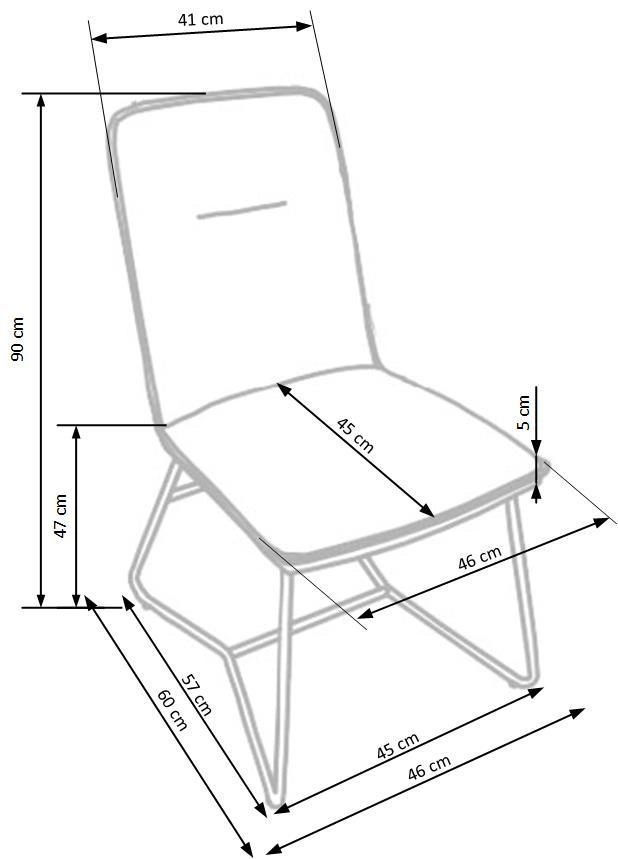 - Wymiary krzesła (46/60/90/47 cm) są optymalne, co sprawia, że jest ono odpowiednie do użytku w jadalni, salonie, biurze czy sypialni