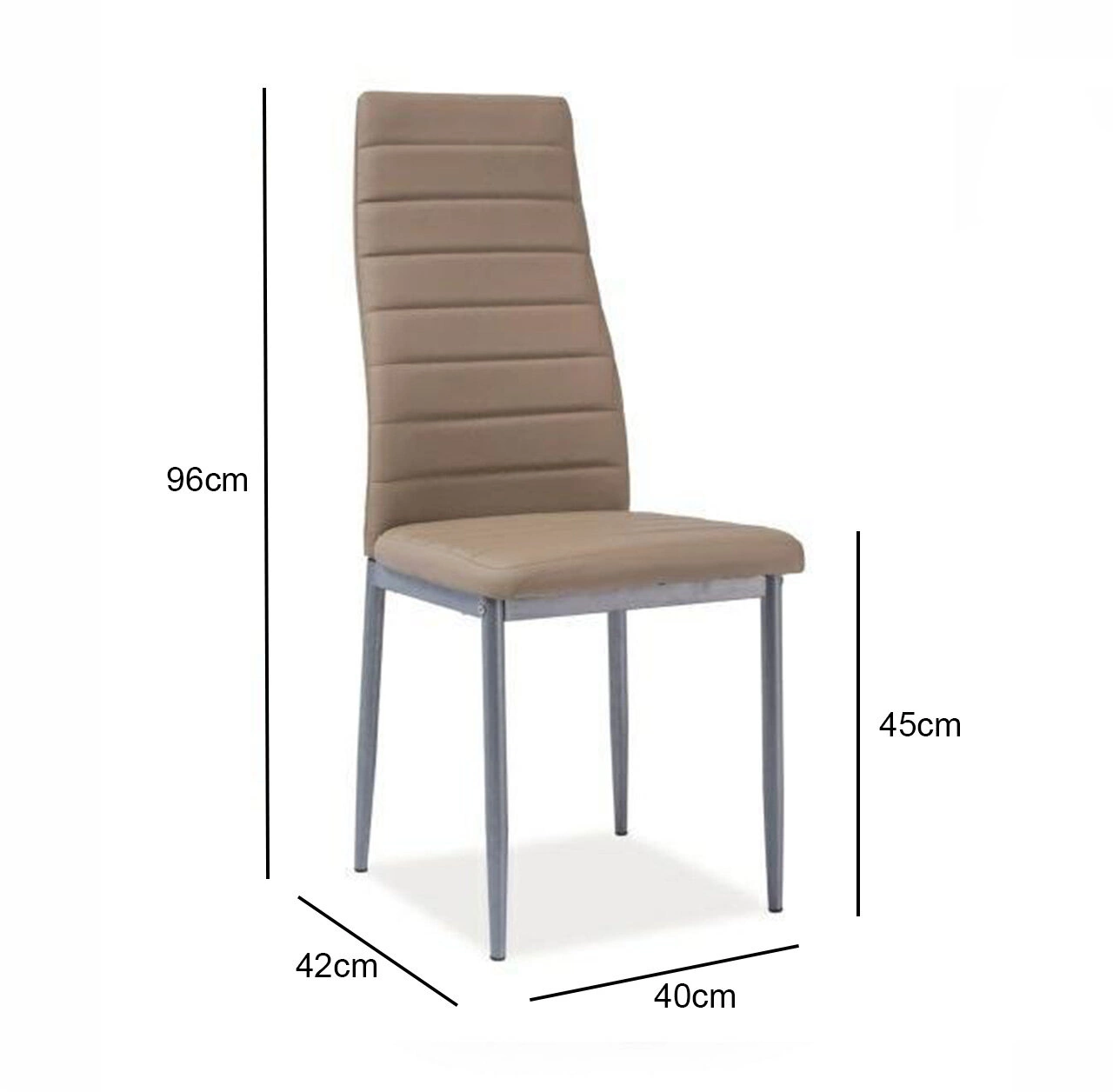 Krzesło Luisa to wykwintne połączenie elegancji i niedopowiedzianego stylu. Modna aksamitna tapicerka w wielu pięknych kolorach sprawia, że jest to zawsze świetny wybór do każdego pomieszczenia. Dzięki czystym liniom i wygodnemu wypełnieniu pianką, to krzesło z wysokim oparciem zapewni Ci maksymalny komfort podczas posiłków lub podczas odpoczynku po długim dniu. Aluminiowe nogi mebla zapewniają solidną stabilność. Dzięki wąskiej formie Luisa pasuje do ciasnych pomieszczeń, nie zajmując zbyt wiele miejsca, co czyni to krzesło idealnym na spotkania rodzinne, do sali bankietowej, a nawet jako stylowy akcent w małych pomieszczeniach lub poczekalniach. Dzięki tapicerce z ekologicznej skóry, krzesło jest niezwykle łatwe do utrzymania w czystości.