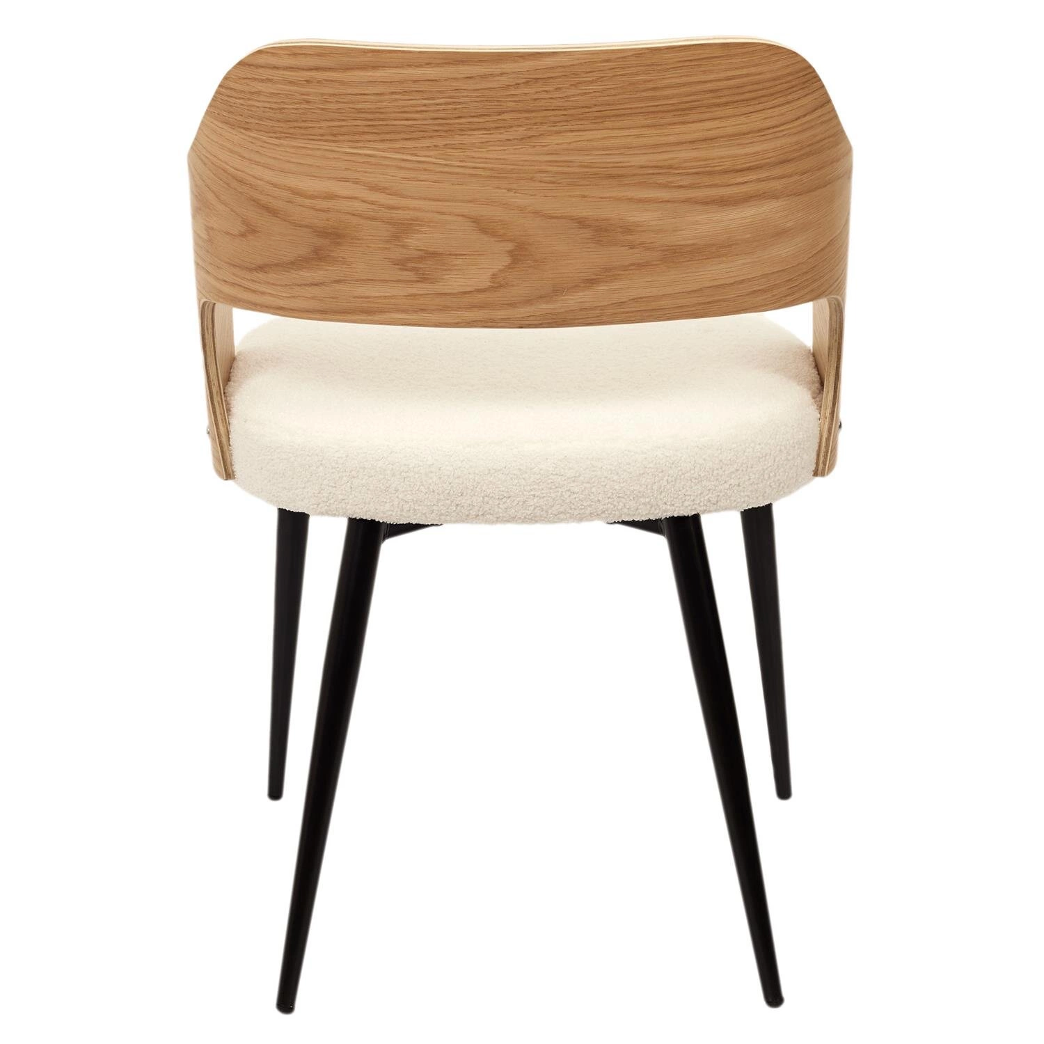 Krzesło Roci to niezwykle stylowe i nowoczesne rozwiązanie, które doskonale wpisuje się w obecne trendy modowe. Jego połączenie giętej sklejki na oparciu i miękkiego materiału boucle na siedzisku sprawia, że jest ono nie tylko estetyczne, ale również bardzo wygodne.