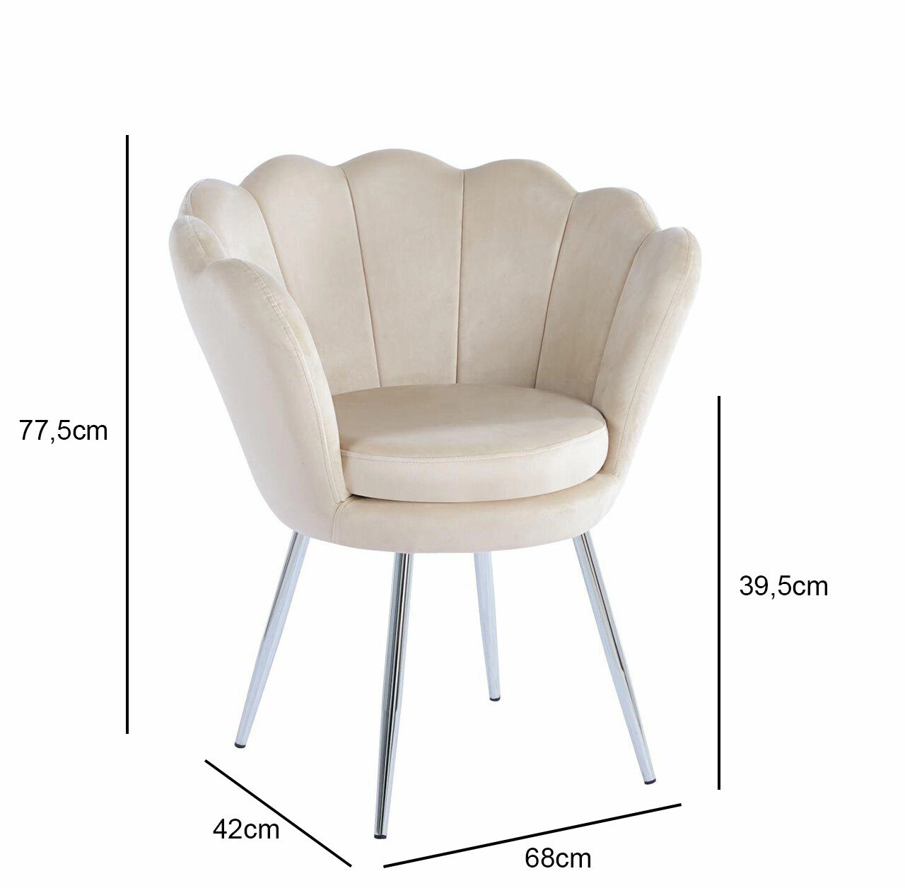 Dzięki swoim wymiarom, krzesło zapewnia wygodne miejsce do odpoczynku. Wysokie oparcie oraz miękkie siedzisko pokryte tapicerką z tkaniny velvet sprawiają, że siedzenie na nim staje się prawdziwą przyjemnością. Chromowane nogi dodają krzesłu elegancji i lekkości, jednocześnie zapewniając stabilność i trwałość.