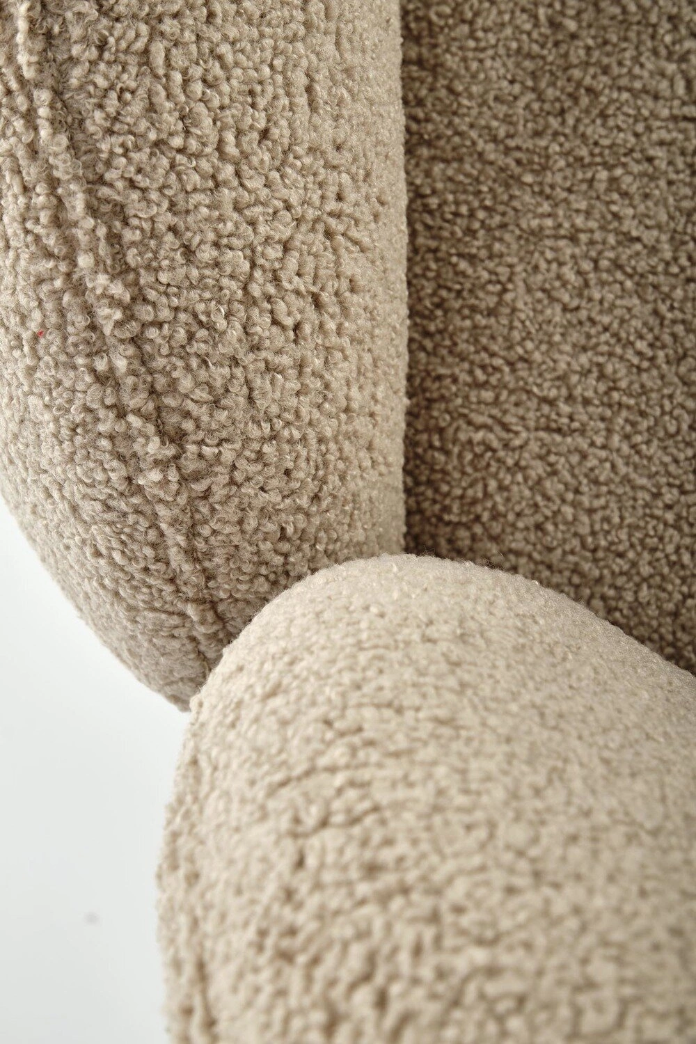 Materiały: Wykonane z tkaniny bouclé i proszkowo malowanej stali krzesło jest zarówno luksusowe, jak i komfortowe.