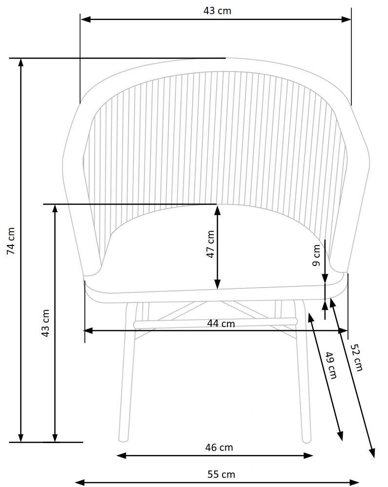 - Kompaktowe wymiary sprawiają, że krzesło doskonale pasuje do różnych przestrzeni, zarówno wewnątrz, jak i na zewnątrz domu
