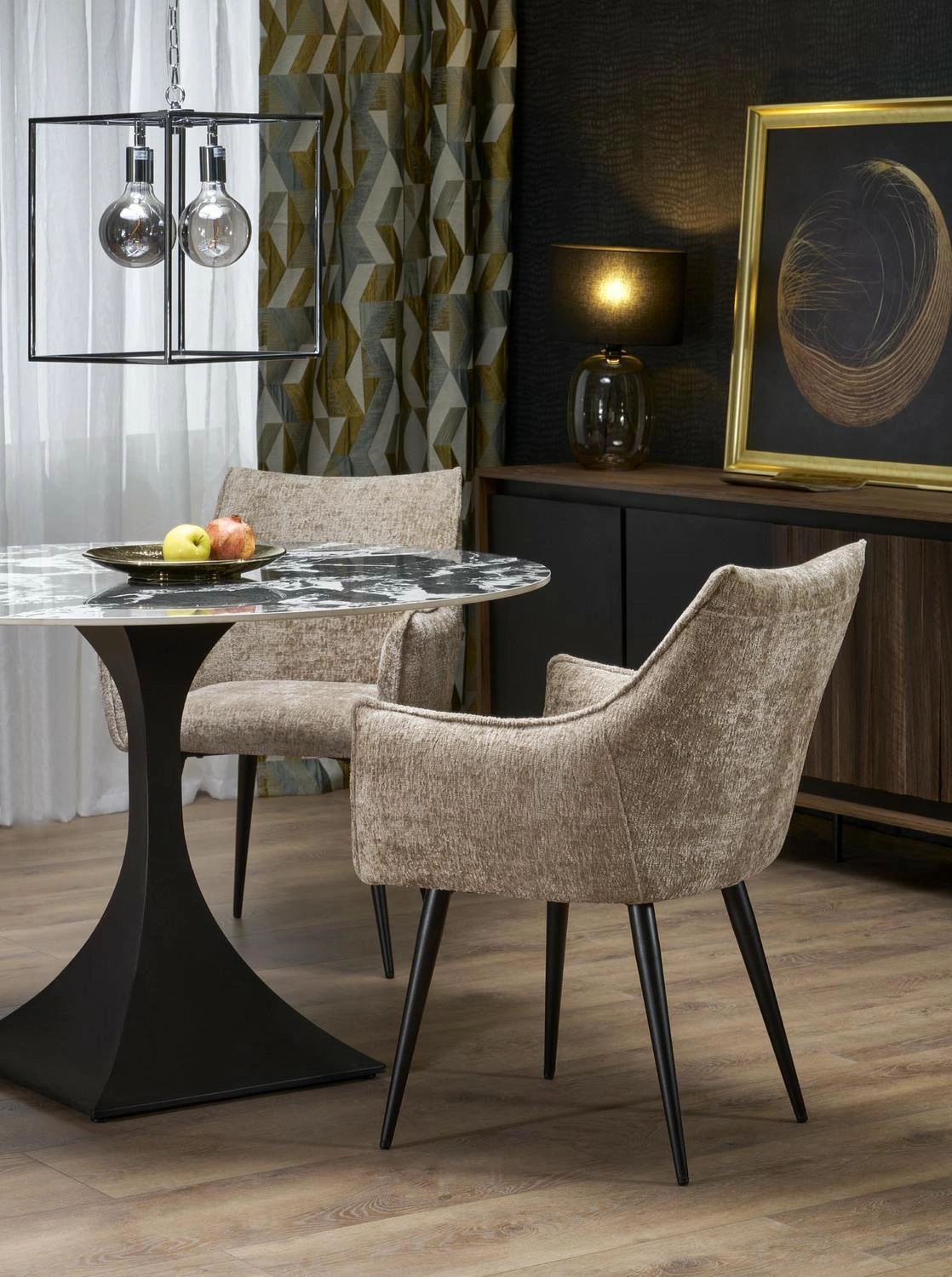 Komfort użytkowania to jedna z kluczowych cech tego krzesła. Zaprojektowane siedzisko i oparcie zapewniają wygodę nawet podczas długiego siedzenia, co jest szczególnie ważne w kontekście codziennego użytku. Dzięki szerokiemu siedzisku i dobrze wyprofilowanemu oparciu, krzesło Arhiza gwarantuje odpowiednie wsparcie dla pleców, co przekłada się na komfort i zdrowie użytkowników. Beżowa tkanina, którą wykończono krzesło, jest miękka w dotyku, co dodatkowo zwiększa wygodę siedzenia, a jednocześnie jest trwała i łatwa do utrzymania w czystości.