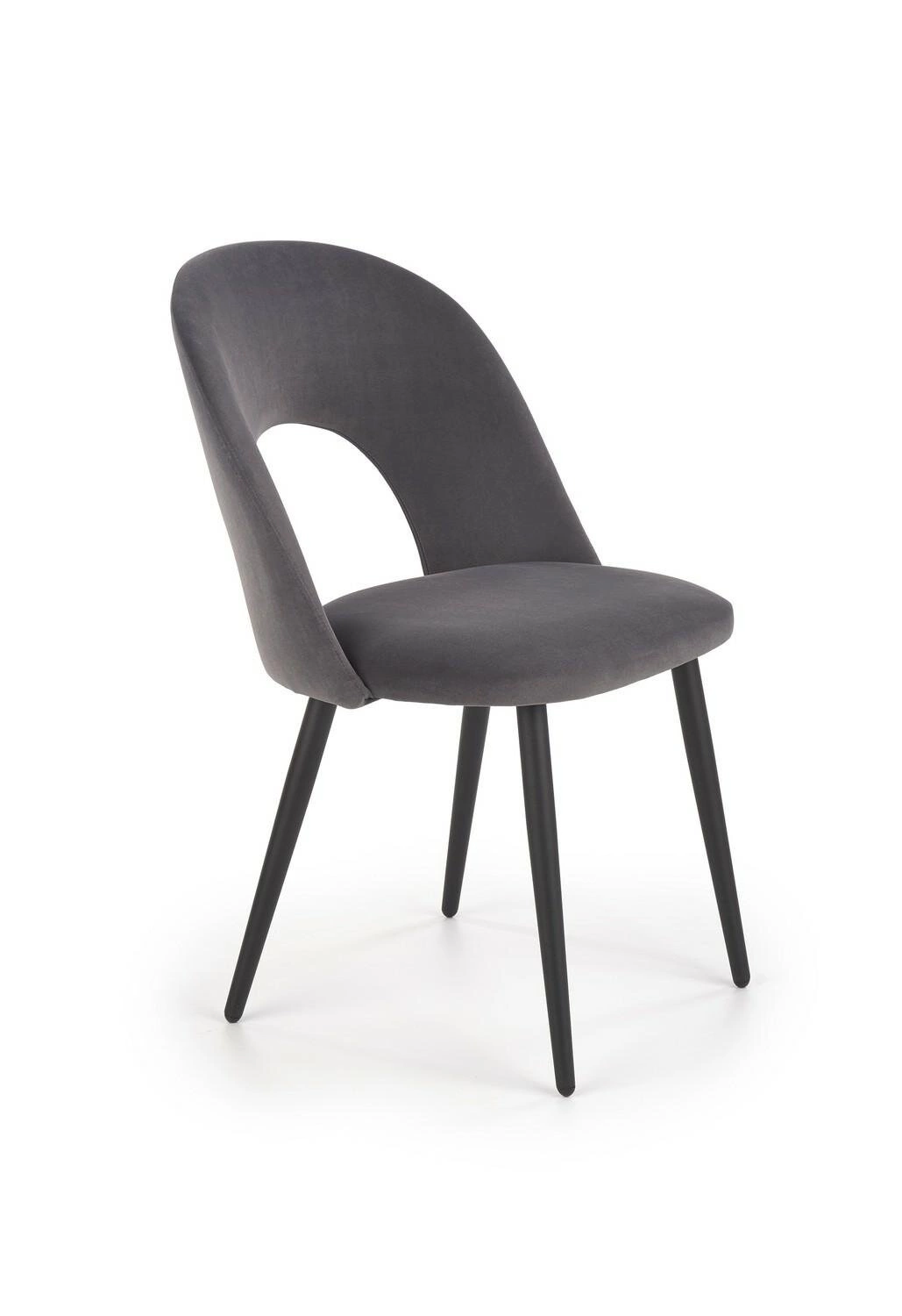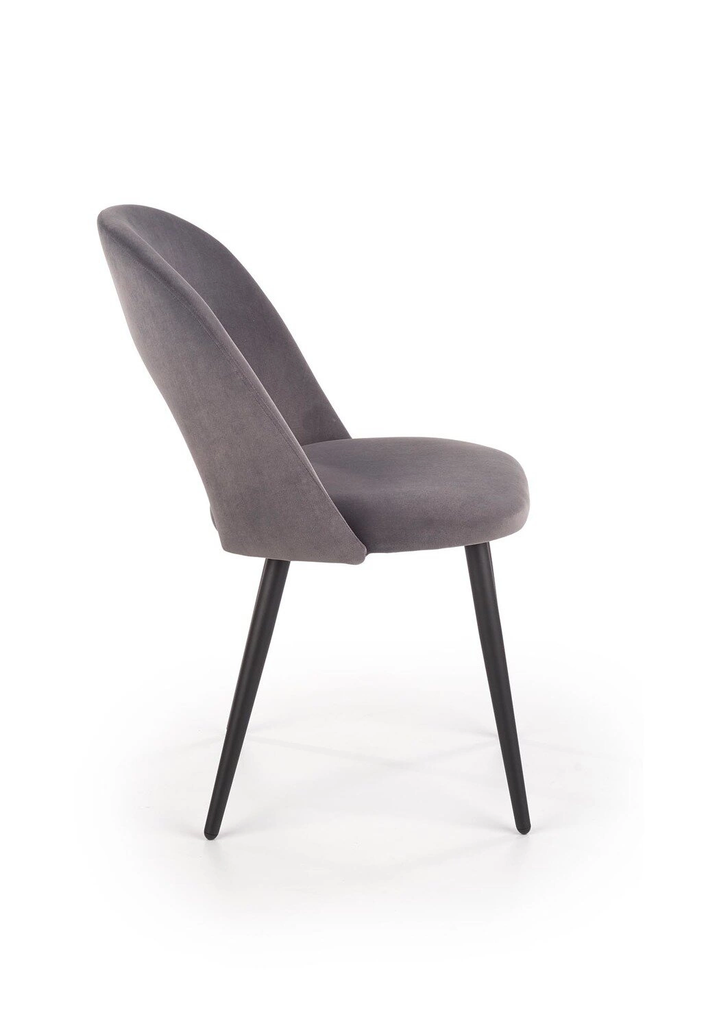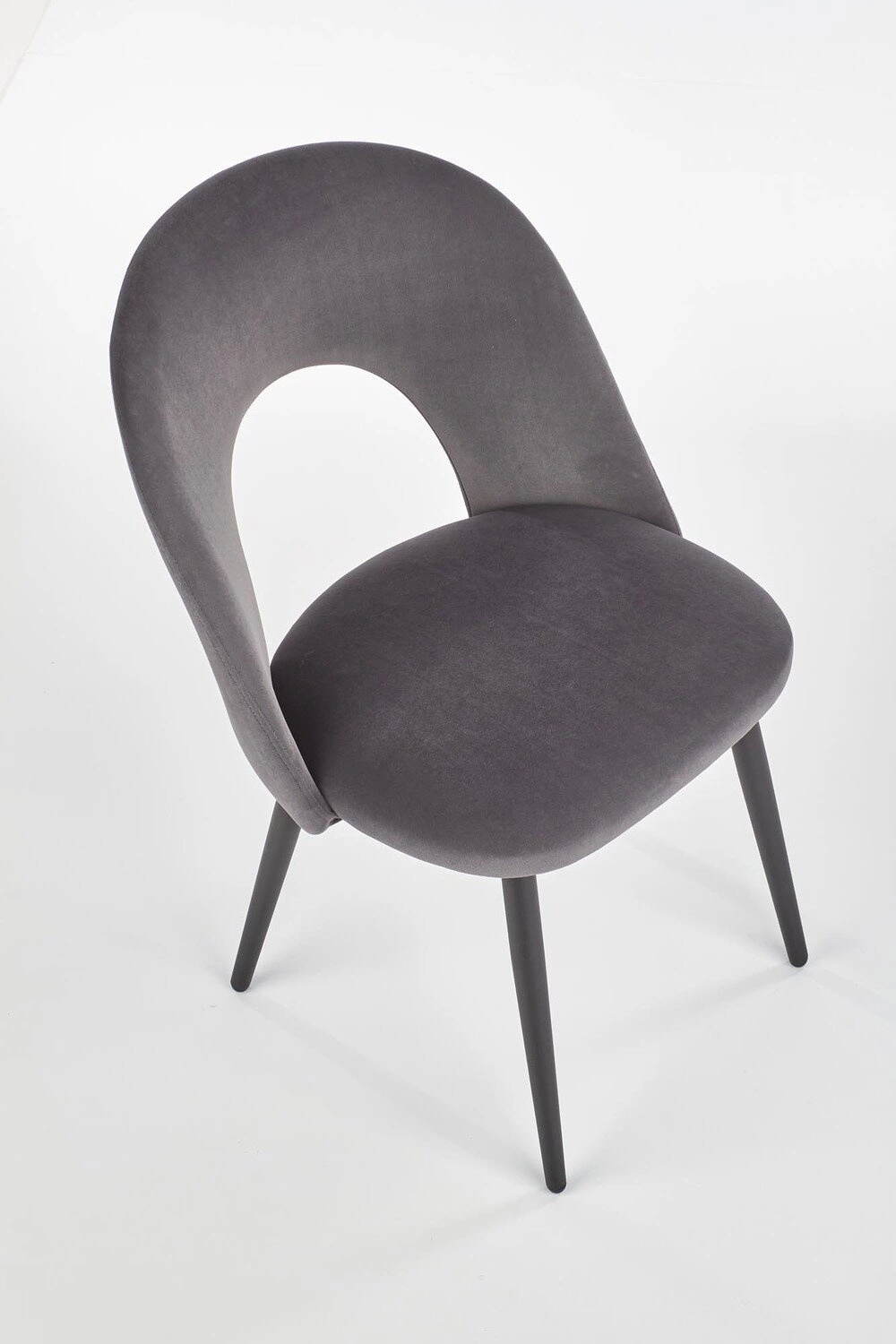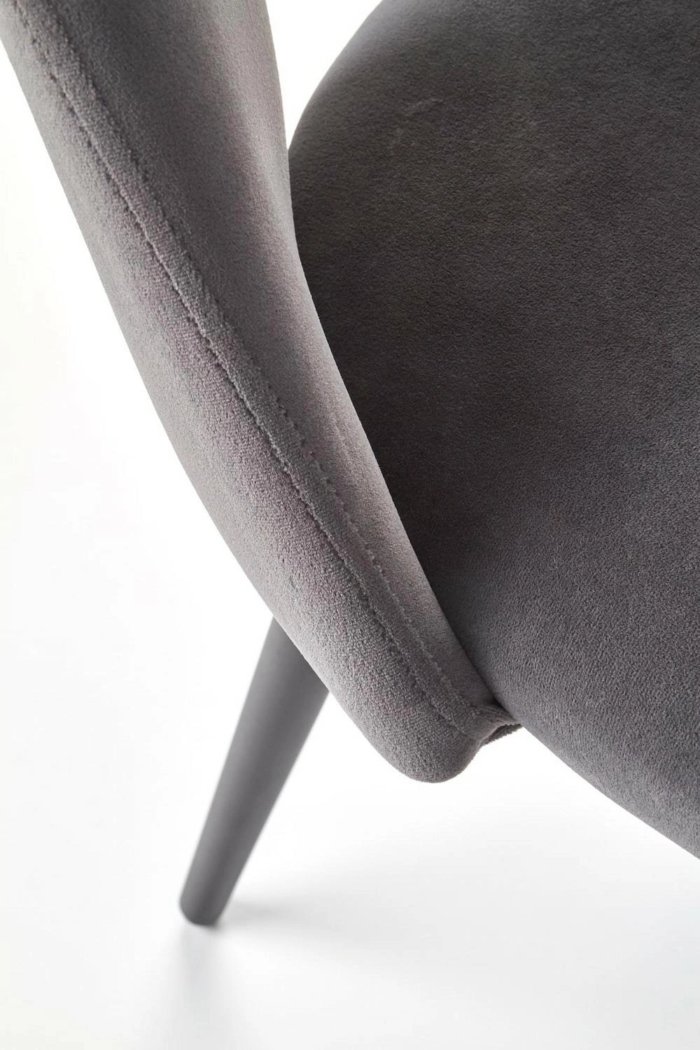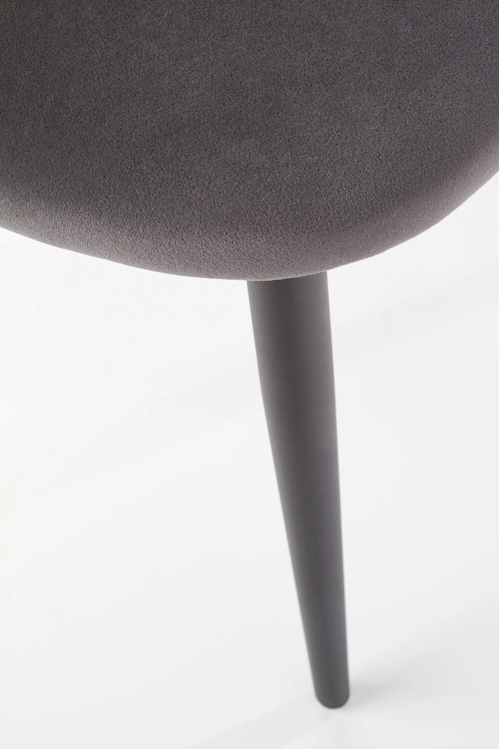 Krzesło muszelka posiada podstawę z prostymi nogami wykonanymi z wytrzymałego, czarnego metalu. Dzięki temu to ponadczasowe krzesło może być używane jako krzesło do jadalni, salonu, gabinetu, a nawet jako siedzisko przy toaletce. Duża szerokość i solidnie tapicerowane, miękkie siedzisko zapewniają wygodę nawet na długie godziny siedzenia, a unikalna tkanina dodaje mu wyrafinowania.