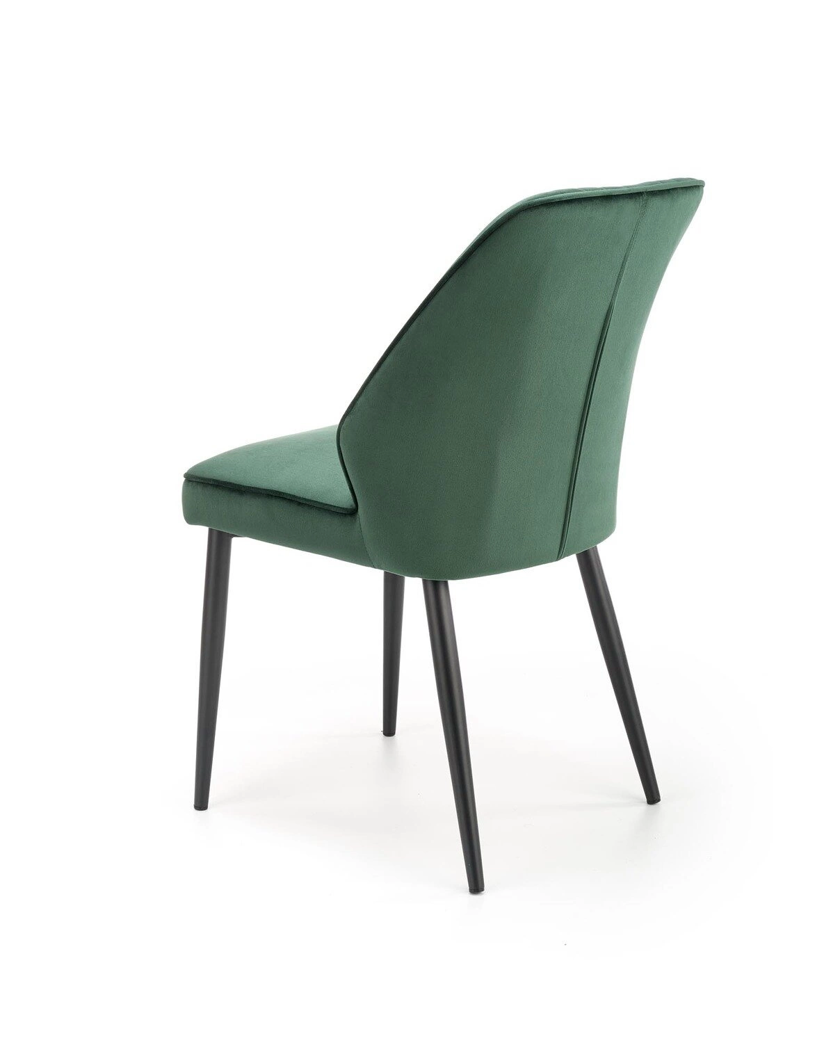 Komfort: Welwetowe obicie i przemyślane wymiary krzesła gwarantują komfort siedzenia, nawet podczas długotrwałego korzystania.