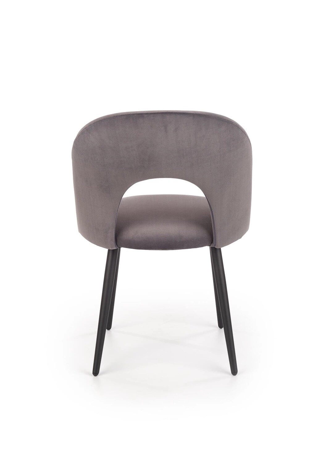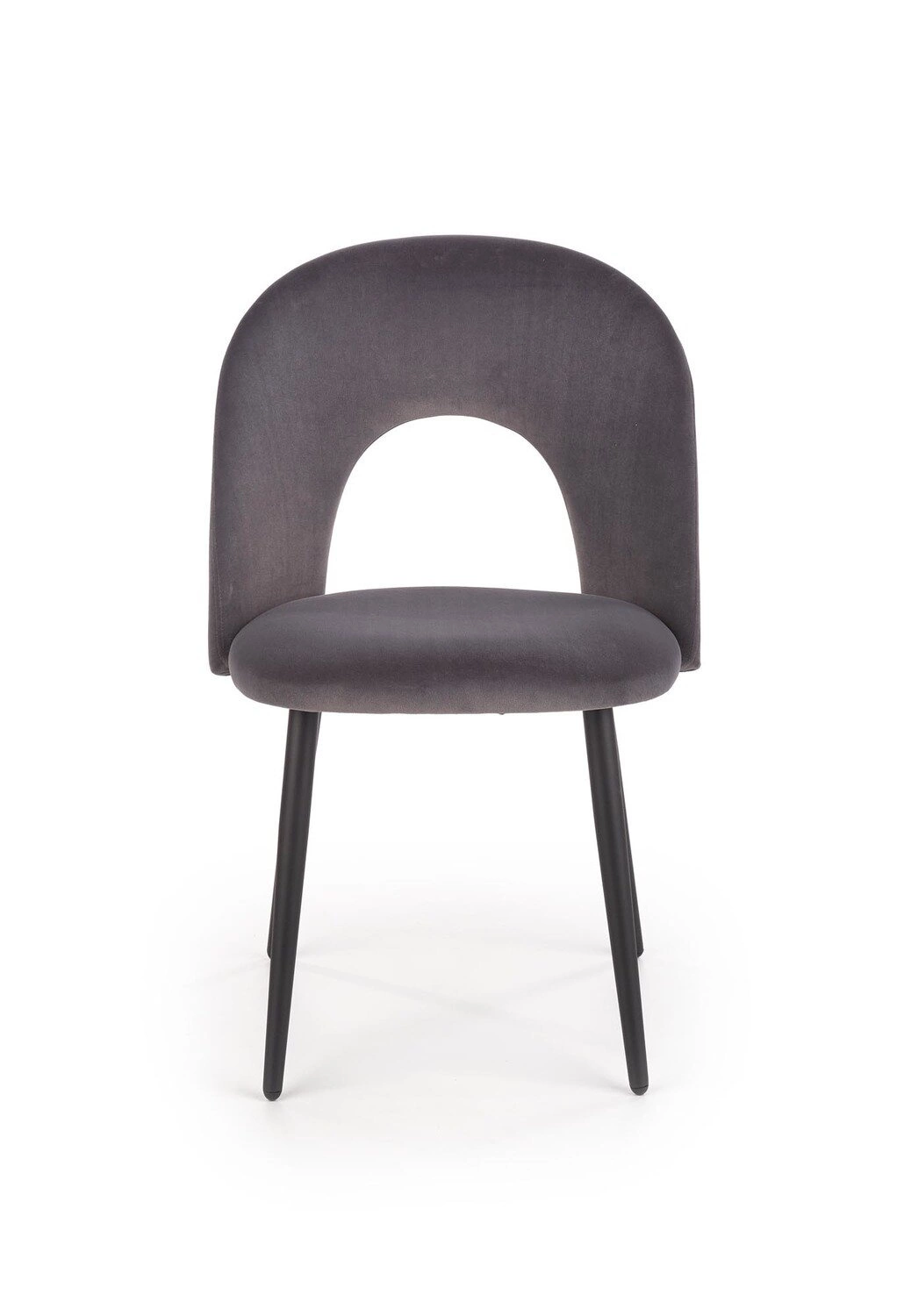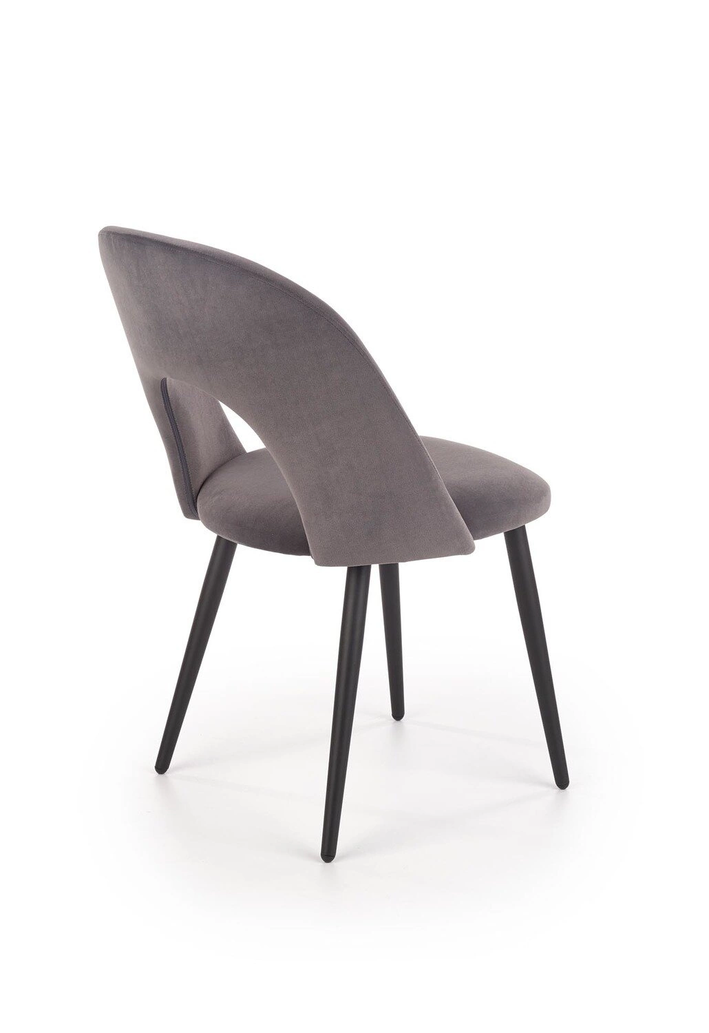 Krzesło muszelka posiada podstawę z prostymi nogami wykonanymi z wytrzymałego, czarnego metalu. Dzięki temu to ponadczasowe krzesło może być używane jako krzesło do jadalni, salonu, gabinetu, a nawet jako siedzisko przy toaletce. Duża szerokość i solidnie tapicerowane, miękkie siedzisko zapewniają wygodę nawet na długie godziny siedzenia, a unikalna tkanina dodaje mu wyrafinowania.