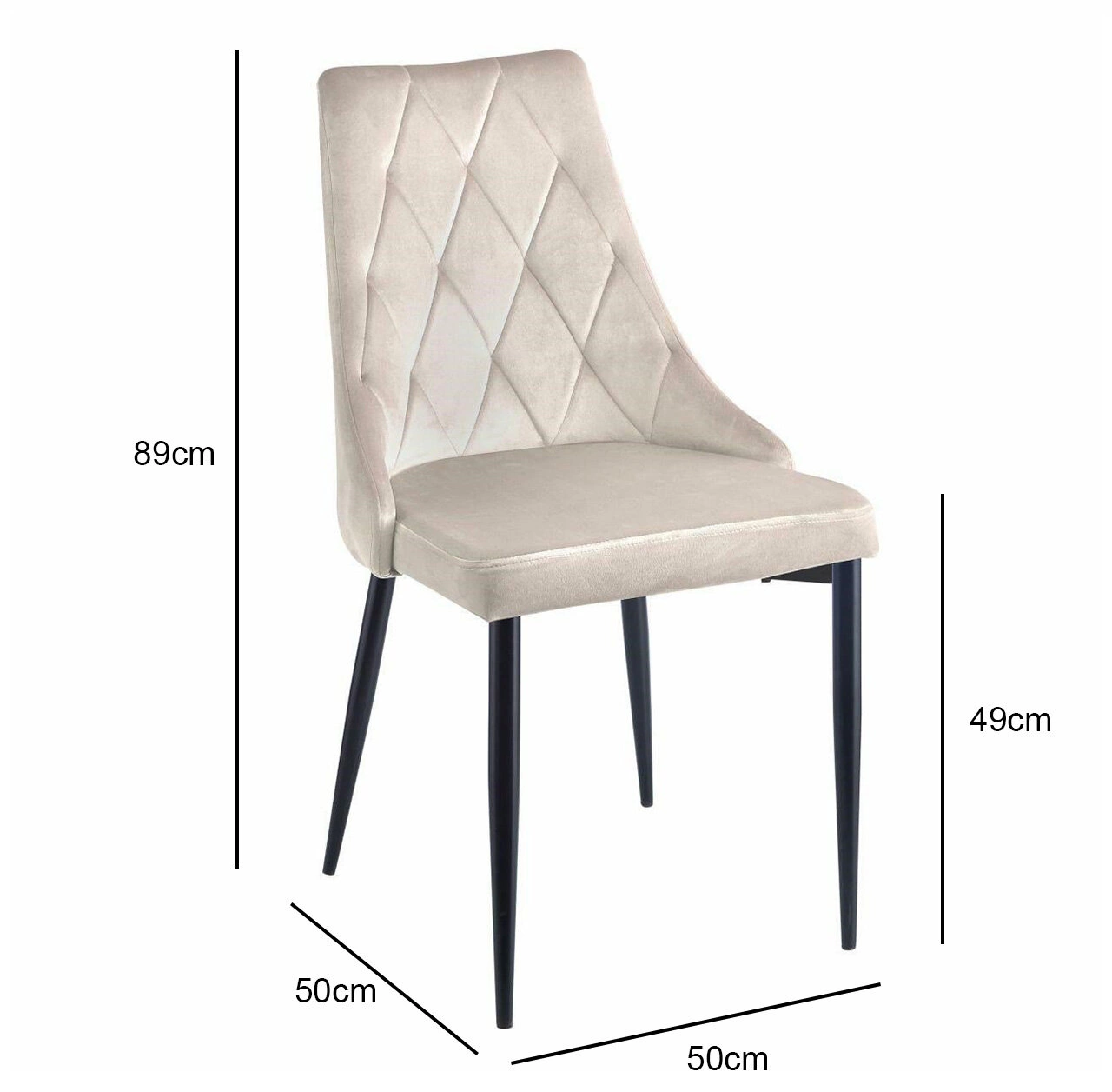 Krzesło Loretta to idealne połączenie komfortu i elegancji, które sprawi, że Twoja jadalnia lub salon nabiorą nowoczesnego charakteru. Wykonane z miłej w dotyku tkaniny welwet, to krzesło nie tylko zachwyca swoim wyglądem, ale również zapewnia niezrównany komfort użytkowania. Jego równomierne przeszycia w romby na oparciu dodają mu wyjątkowego uroku i sprawiają, że krzesło Loretta staje się prawdziwą ozdobą wnętrza. Delikatnie wyprofilowane oparcie doskonale wspiera plecy, zapewniając wygodę nawet podczas długotrwałego siedzenia.