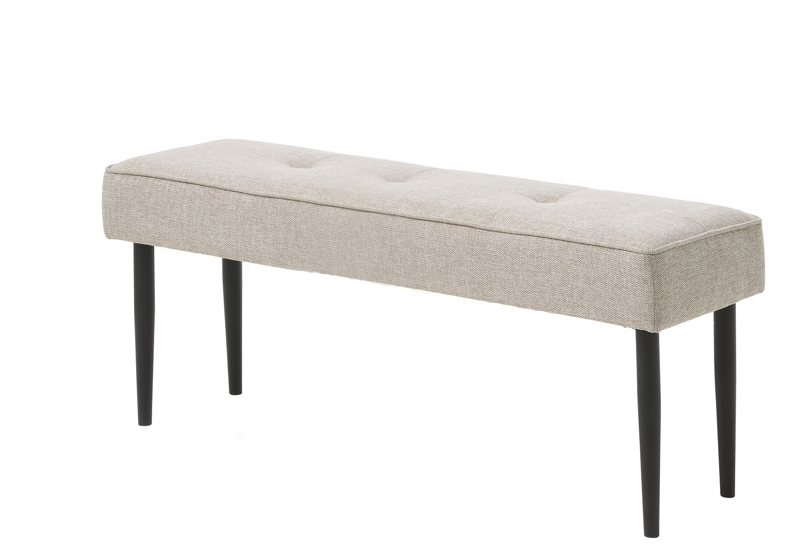 Ławka tapicerowana Alize marki UNIQUE Furniture to nowoczesny i funkcjonalny mebel o długości 140 cm, który zachwyca subtelnym, piaskowym wykończeniem siedziska oraz solidną podstawą na czarnych, metalowych nogach. Oferuje wygodne miejsce do siedzenia dla trzech osób oraz wyróżnia się eleganckim pikowaniem, które wprowadza do wnętrza ponadczasową klasę. Model ten znakomicie sprawdzi się jako ławka do przedpokoju, sypialni lub salonu, podkreślając nowoczesny styl aranżacji i zapewniając komfort na co dzień.