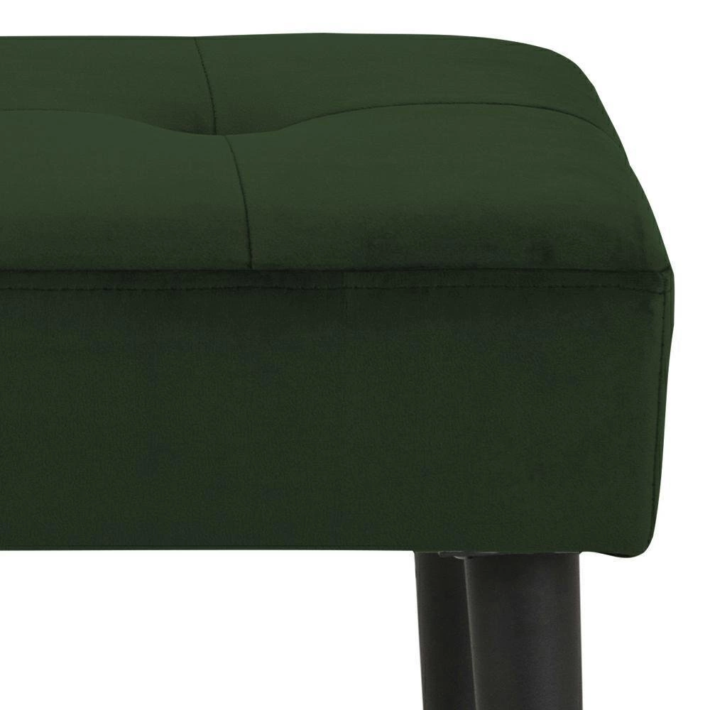 Ławka do przedpokoju Glory to wygodne siedzisko nie tylko pomagające w zakładaniu butów. Mebel wyposażony został w niezwykle przyjemne, miękkie siedzisko zrobione z pianki, obite przyjemną w dotyku welurową tkaniną w odcieniu zieleni. Ciekawe pikowania na siedzisku dodaje ławce charakteru stylu glamour. Tkanina użyta do obicia mebla to VIC forest green 68. Całość osadzona została na wysokich, zwężających się nogach z metalu malowanego proszkowo. Ławka może być siedziskiem w poczekalni, ławką dla dzieci lub ławką w hotelowym lobby.