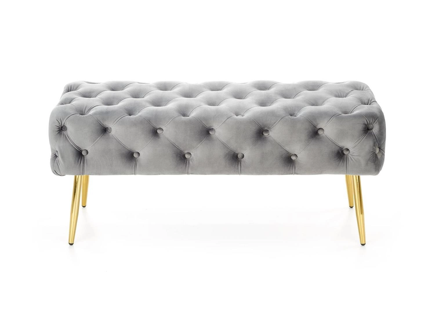 - Podstawa z czterema złotymi metalowymi nóżkami nadaje ławce elegancji i stabilności.