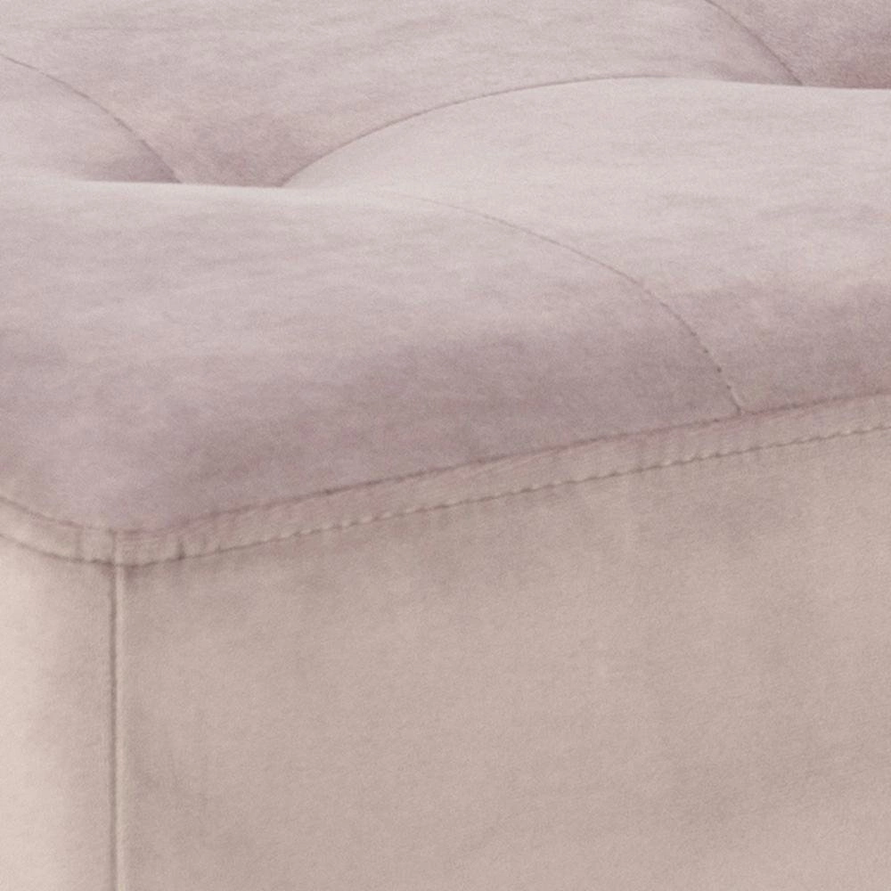 Ławka do przedpokoju Glory to wygodne siedzisko nie tylko pomagające w zakładaniu butów. Mebel wyposażony został w niezwykle przyjemne, miękkie siedzisko zrobione z pianki, obite przyjemną w dotyku welurową tkaniną w odcieniu różu. Ciekawe pikowania na siedzisku dodaje ławce charakteru stylu glamour. Tkanina użyta do obicia mebla to VIC dusty rose 18. Całość osadzona została na wysokich, zwężających się nogach z metalu malowanego proszkowo. Ławka może być siedziskiem w poczekalni, ławką dla dzieci lub ławką w hotelowym lobby.