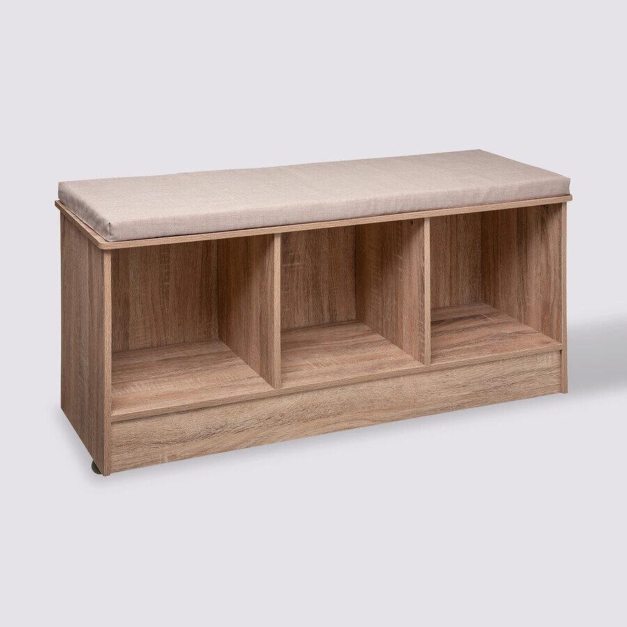 Trzy półki, które znajdują się pod siedziskiem, to idealne miejsce do przechowywania różnych przedmiotów. Niezależnie od tego, czy chcesz przechowywać książki, pojemniki czy dekoracje, te trzy półki zapewnią Ci wystarczająco dużo miejsca, aby utrzymać porządek w swoim pomieszczeniu. Dzięki wysokości półek wynoszącej 32 cm, będziesz mógł przechowywać nawet większe przedmioty, bez obawy o brak miejsca. Niskie nogi o wysokości 11 cm sprawiają, że ławka jest nie tylko stabilna, ale także trwała.