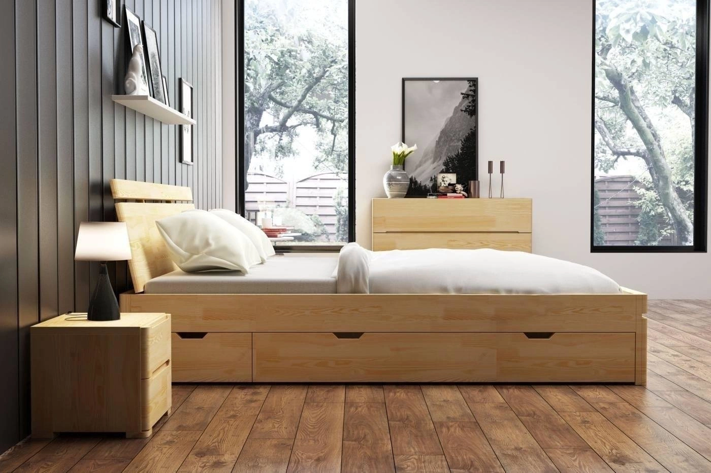 Łóżko drewniane Sparta Maxi 120x220 to solidny mebel w skandynawskim stylu, wykonany z naturalnego drewna sosnowego. Posiada cztery obszerne szuflady, które zapewniają praktyczną przestrzeń do przechowywania, oraz ergonomiczny, lekko pochylony zagłówek. Dzięki możliwości personalizacji koloru doskonale dopasujesz je do swojej sypialni.