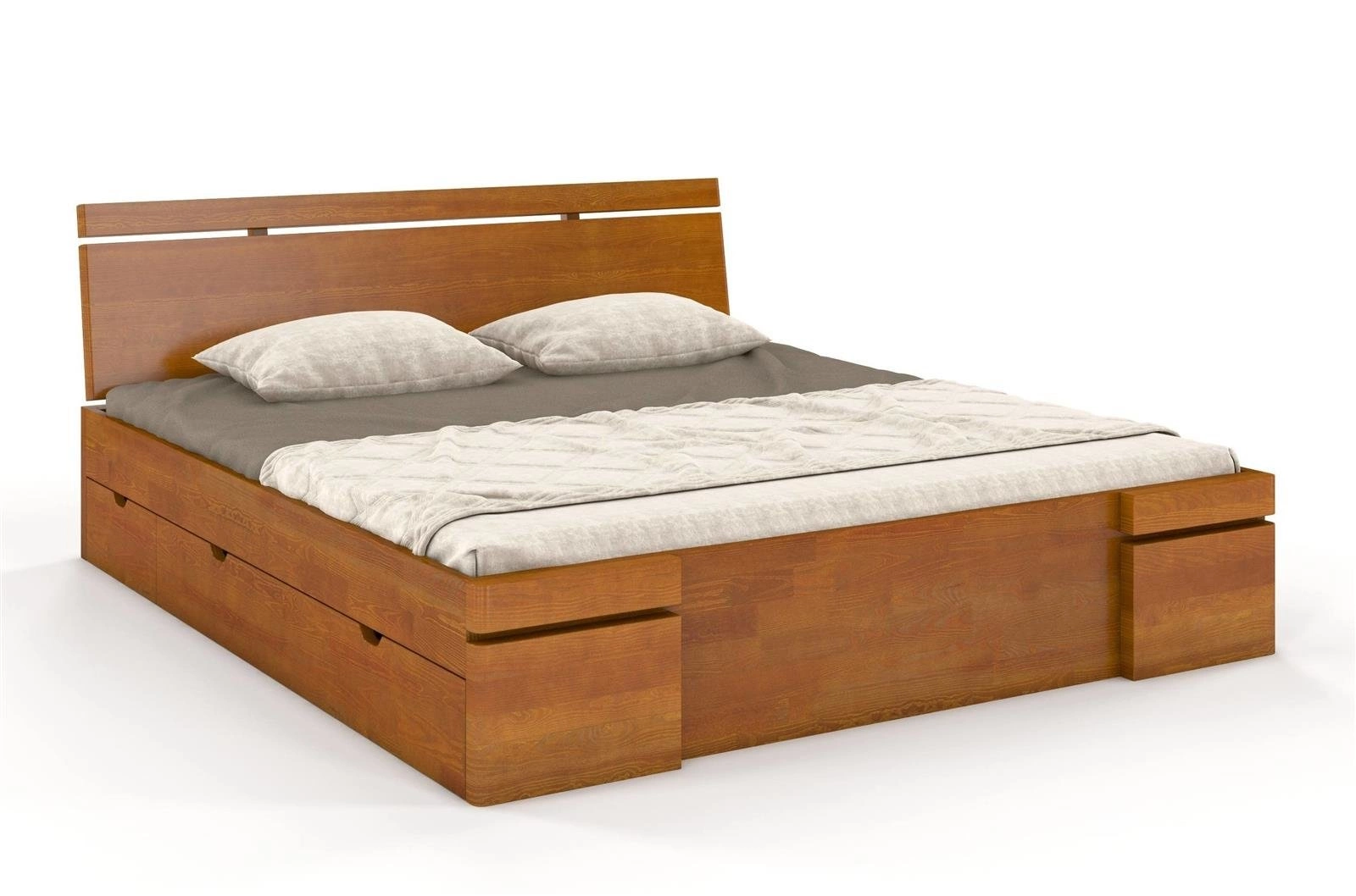 Łóżko drewniane Sparta Maxi 180x220 to solidny, skandynawski mebel do sypialni, wykonany z litego drewna sosnowego, o powierzchni spania 180x220 cm. Model wyróżnia się minimalistycznym stylem, personalizowanym kolorem wykończenia oraz czterema pojemnymi szufladami, które pomogą zadbać o porządek w Twojej przestrzeni. Przeznaczone jako łóżko dwuosobowe, zapewnia komfort i wygodę na co dzień, łącząc trwałość z funkcjonalnością.