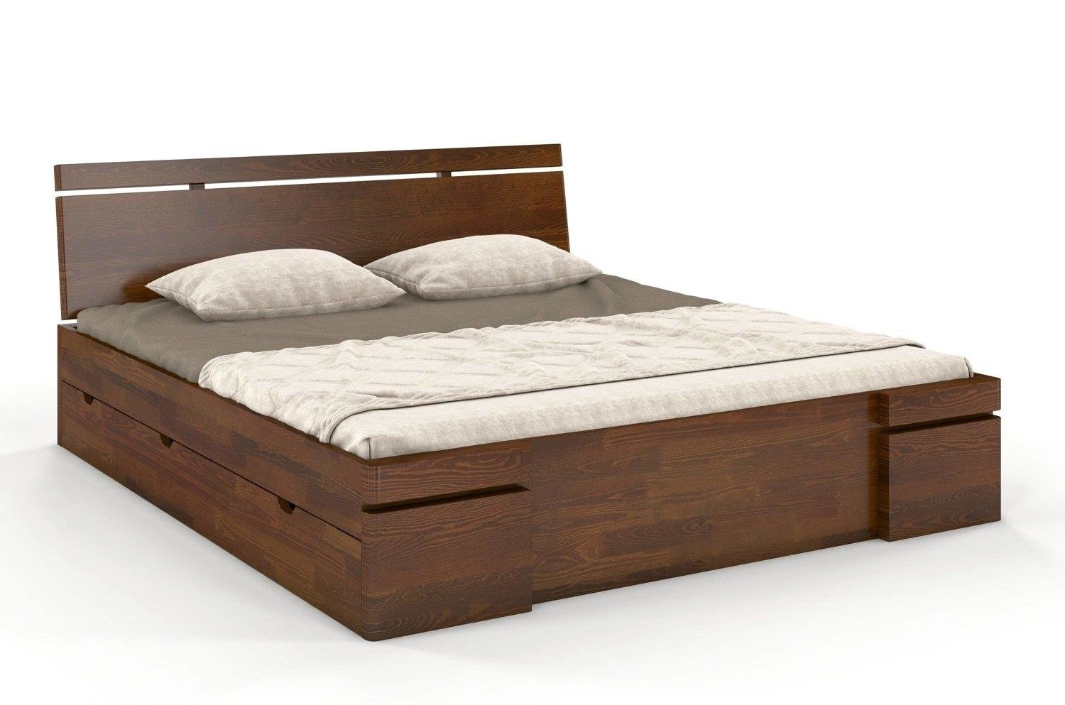Łóżko Sparta Maxi zaprojektowano z myślą o codziennym komforcie oraz wygodzie użytkowania. Dzięki czterem praktycznym szufladom, rozmieszczonym po obu stronach, zyskujesz łatwy dostęp do dodatkowego miejsca na pościel, koce czy sezonową odzież. To doskonałe rozwiązanie dla osób ceniących porządek i funkcjonalność w sypialni. Wysokość łóżka 86 cm zapewnia wygodne wstawanie, a specjalnie wyprofilowany, lekko pochylony zagłówek z litego drewna sosnowego pozwala komfortowo oprzeć się podczas czytania czy relaksu.