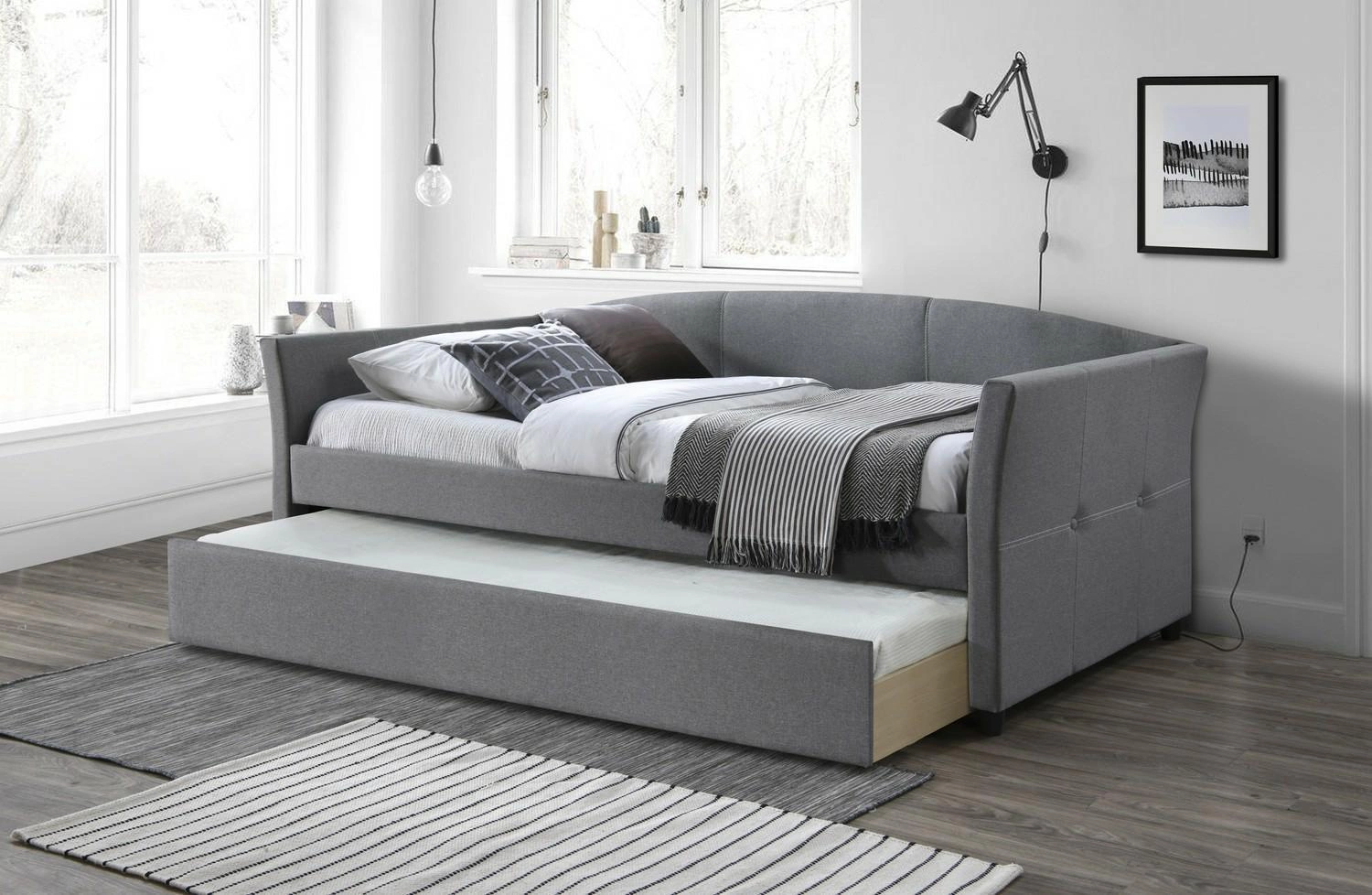 Kolor popielaty to uniwersalna i elegancka propozycja, która doskonale wpasuje się w każde wnętrze. Wysuwany dolny materac to idealne rozwiązanie. Waga łóżka wynosi 62kg, a maksymalne obciążenie to aż 200kg, co oznacza, że bezpiecznie pomieści dwie osoby. Powierzchnia spania 90x200cm to idealne rozwiązanie dla par lub dla osób, które cenią sobie przestrzeń podczas snu. Łóżko wymaga montażu, jednak dzięki instrukcji w zestawie, z łatwością złożysz je samodzielnie.