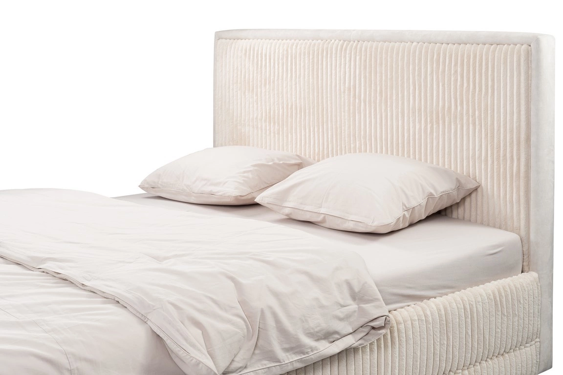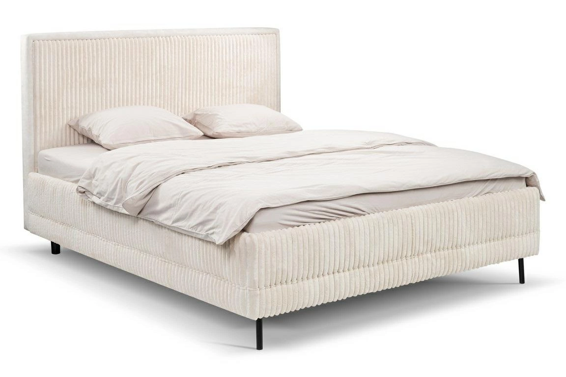 Foggy 140x200 to łóżko tapicerowane, które harmonijnie łączy minimalistyczny design z przytulnością tkaniny sztruksowej. Subtelny beżowy kolor i aksamitne wykończenie nadają przestrzeni lekkości, a czarne, metalowe nogi podkreślają nowoczesny charakter mebla. Ten model świetnie wpasuje się zarówno w jasne, przestronne wnętrza, jak i bardziej kameralne aranżacje sypialni, podkreślając ich skandynawski klimat.