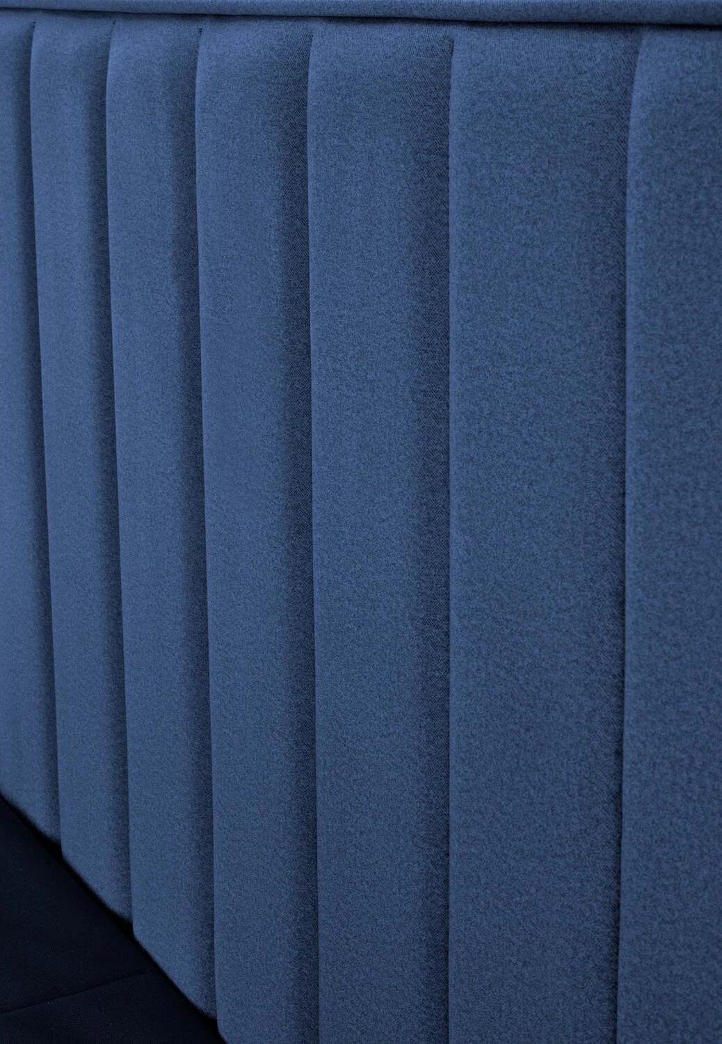 Granatowe łóżko tapicerowane Renji to propozycja dla osób ceniących wyrafinowany styl i komfort użytkowania. Wykończenie z aksamitnej tkaniny welwetowej nie tylko przyciąga wzrok głębią koloru, ale również wprowadza przytulność do każdego wnętrza. Prosta, geometryczna forma oraz wysokie, miękkie zagłowie sprawiają, że łóżko doskonale wpisuje się w klimat nowoczesnych i eleganckich sypialni, a jego uniwersalność pozwala na dowolne łączenie z innymi meblami oraz dodatkami.