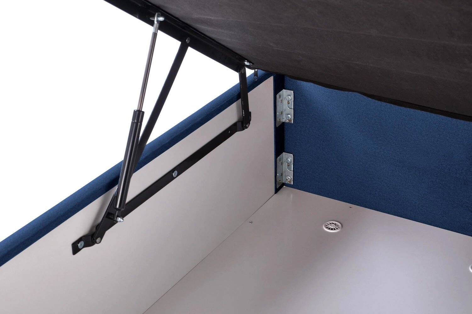 Łóżko Renji 160x200 wyposażono w przestronny pojemnik na pościel, który ułatwia utrzymanie porządku w sypialni. Możesz wygodnie schować zapasowe kołdry, poduszki czy sezonowe tekstylia, zyskując więcej miejsca w szafach. Konstrukcja oparta na stabilnych nogach oraz solidnych materiałach (w tym metal i wytrzymała płyta) zapewnia trwałość i bezpieczeństwo użytkowania przez lata. Łóżko sprzedawane jest bez materaca, co daje Ci możliwość samodzielnego wyboru optymalnego rozwiązania pod kątem komfortu snu – zarówno jeśli preferujesz materac miękki, jak i twardszy.