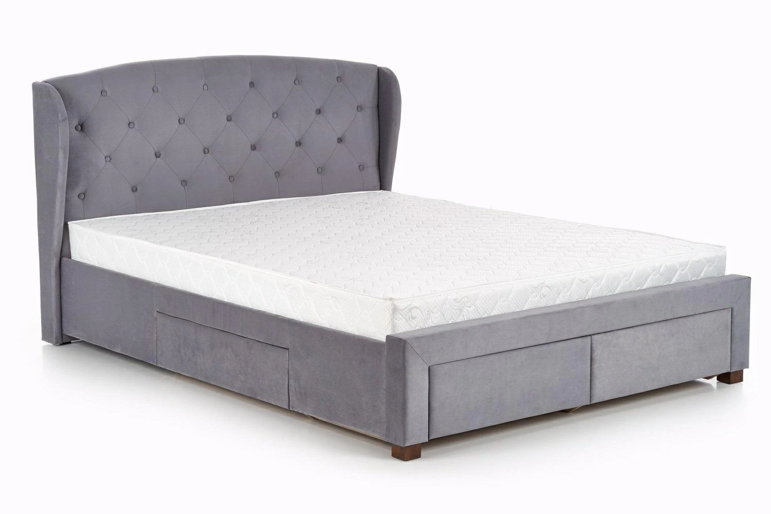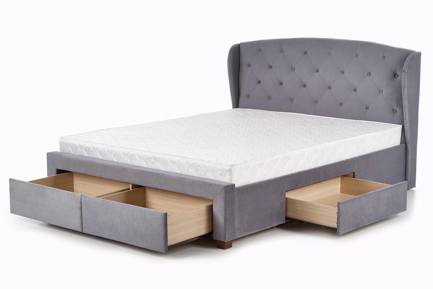Łóżko Saba z szufladami to elegancki mebel, który idealnie pasuje zarówno do ekskluzywnych wnętrz w stylu glamour, jak i nowoczesnych. To funkcjonalne i stylowe rozwiązanie, które zapewni wygodę i praktyczne przechowywanie w sypialni. Mebel wykonany jest z wysokiej jakości materiałów. Rama łóżka wykonana jest z solidnego drewna litego, co gwarantuje jego trwałość i stabilność. Popielaty kolor tkaniny nadaje meblowi subtelnego charakteru, który łatwo wpisze się w różne aranżacje wnętrz.
