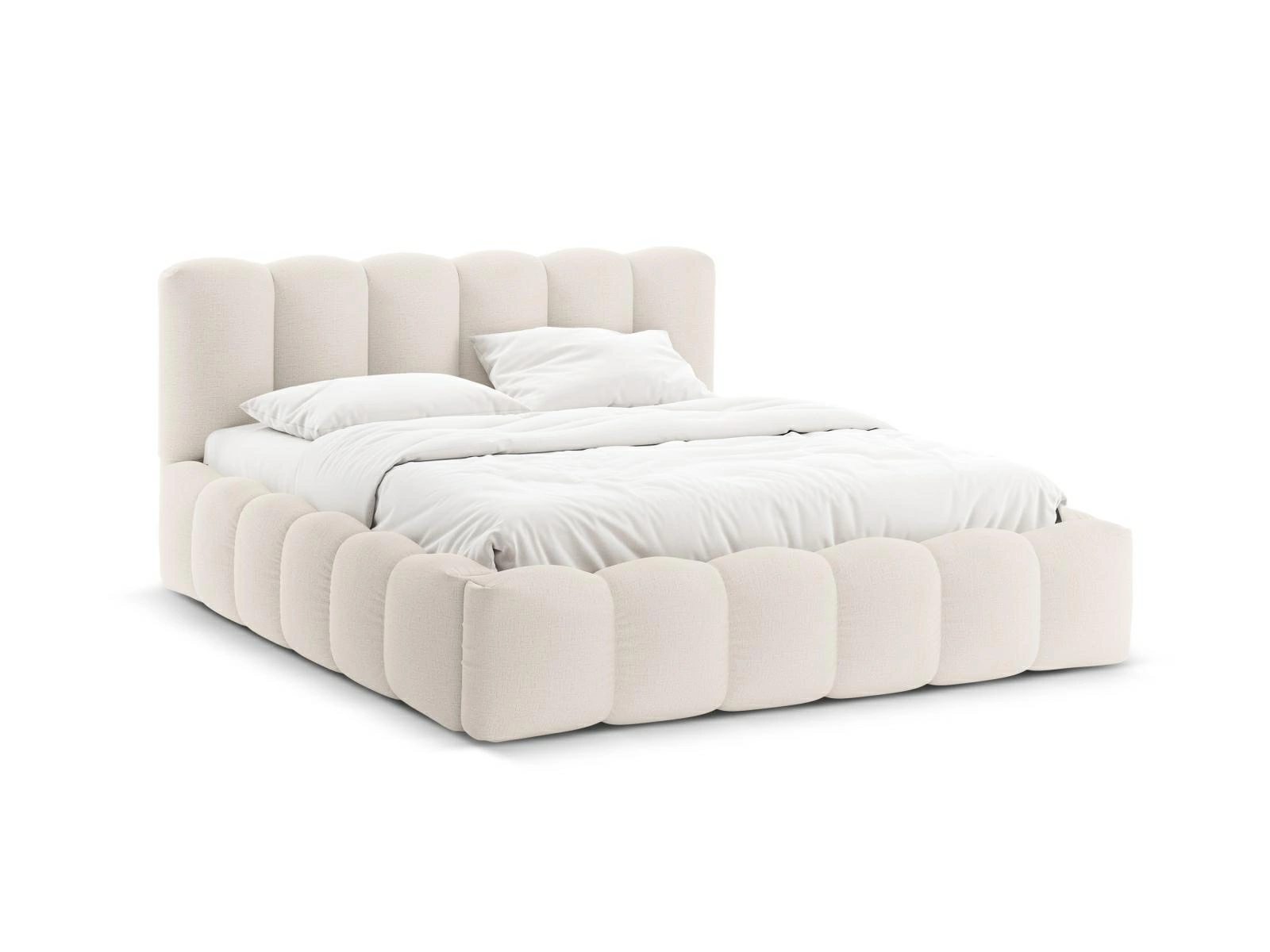 Łóżko tapicerowane Lupine stworzone zostało z myślą o osobach, które cenią wysoki komfort snu i estetykę wnętrza. Miękkie tapicerowanie oraz wysokie, dekoracyjne wezgłowie nie tylko podnoszą walory wizualne, ale również gwarantują wygodne oparcie podczas czytania czy odpoczynku. Neutralny beż doskonale wpisuje się w nowoczesne aranżacje, optycznie powiększając przestrzeń i dodając jej lekkości.