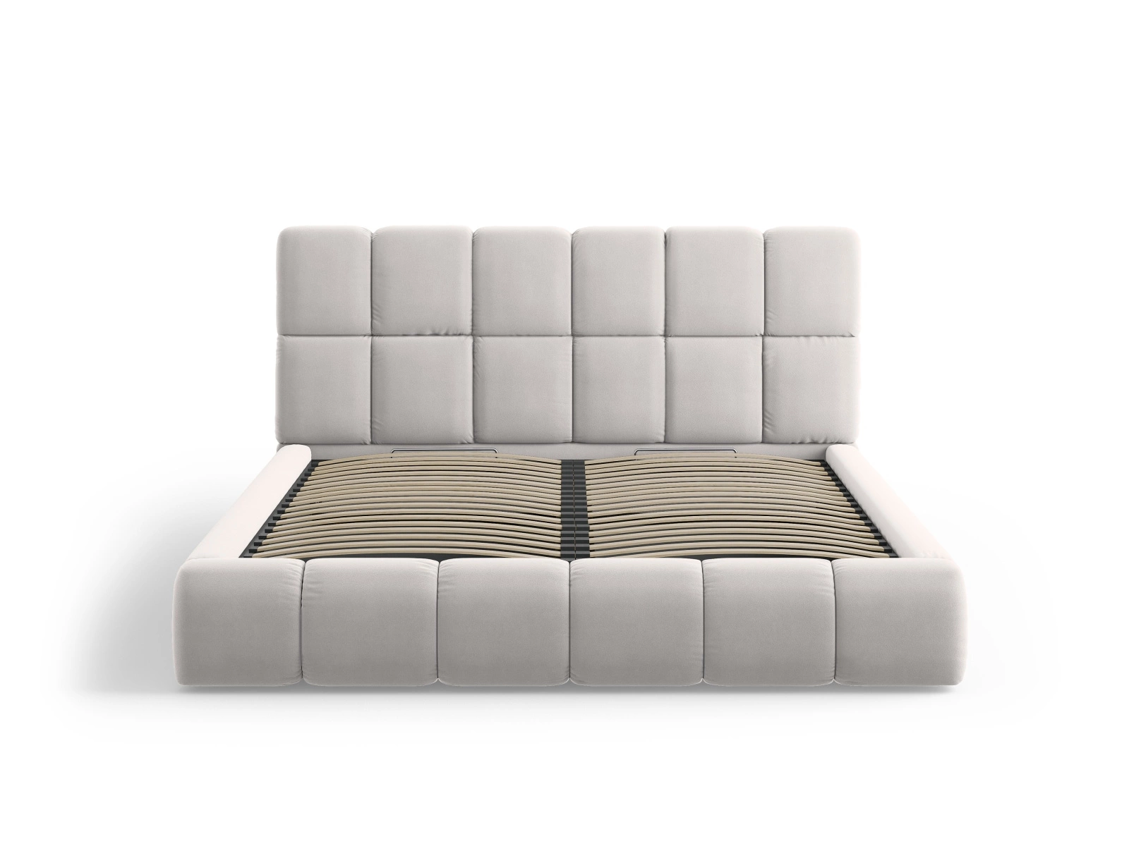 Łóżko Bellis Micadoni Home 180x200 to nowoczesne, szare łóżko tapicerowane welwetem, stworzone z myślą o komforcie i funkcjonalności w Twojej sypialni. Model ten oferuje dużą powierzchnię spania 180x200 cm, solidny stelaż w zestawie oraz praktyczny pojemnik na pościel. Wykończenie aksamitną tkaniną sprawia, że łóżko jest nie tylko przyjemne w dotyku, ale także prezentuje się wyjątkowo elegancko.