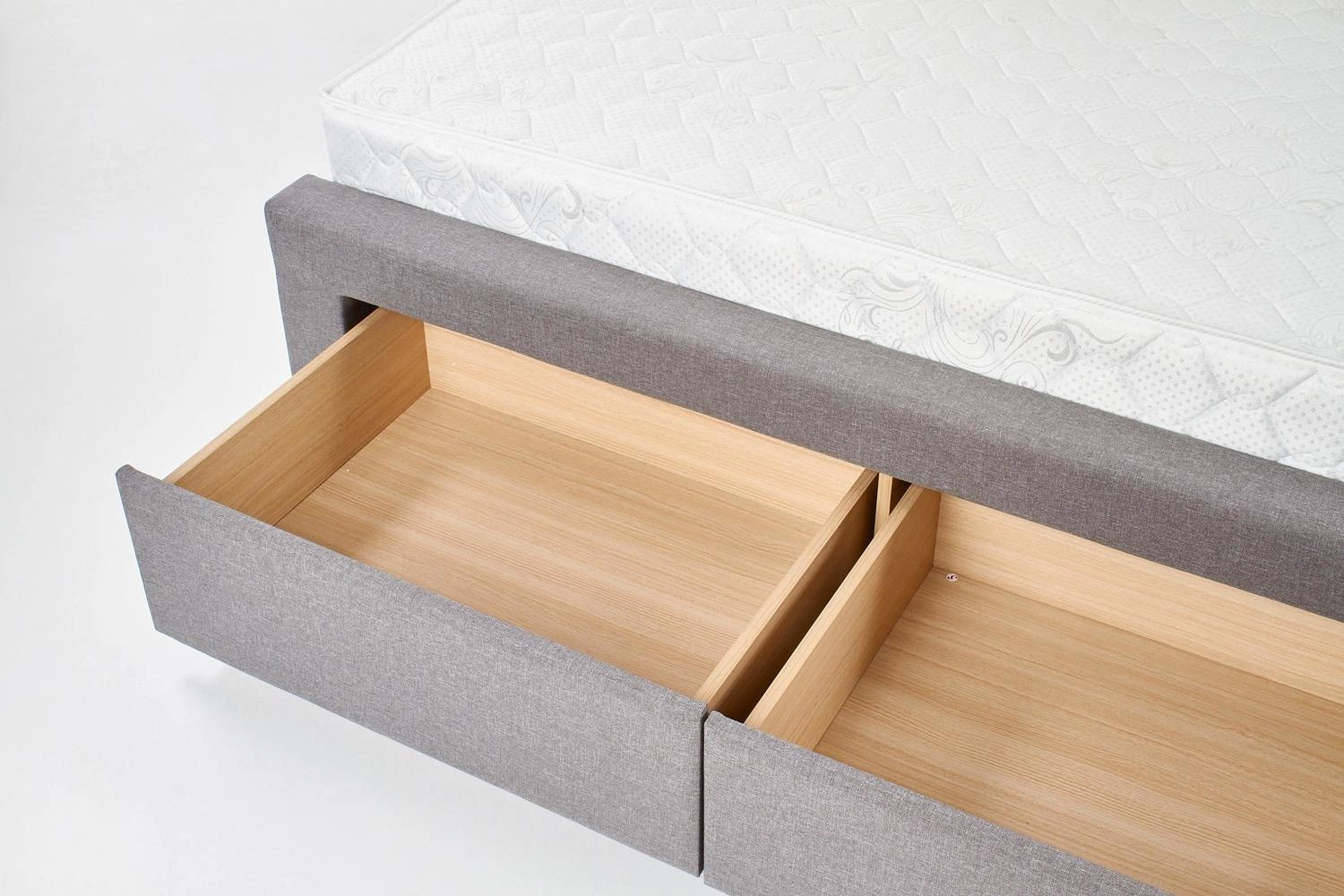 Łóżko do sypialni Diana wyróżnia się niezwykłą pojemnością. Cztery przestronne szuflady oraz praktyczny pojemnik na pościel pomagają utrzymać porządek i maksymalnie wykorzystać przestrzeń nawet w niewielkim pomieszczeniu. To doskonała opcja dla osób, które cenią funkcjonalność oraz lubią mieć wszystko pod ręką – pościel, koce, sezonową odzież czy inne niezbędne akcesoria. Łóżko tapicerowane z szufladami pozwala w prosty sposób zorganizować przestrzeń bez konieczności inwestowania w dodatkowe meble do przechowywania.
