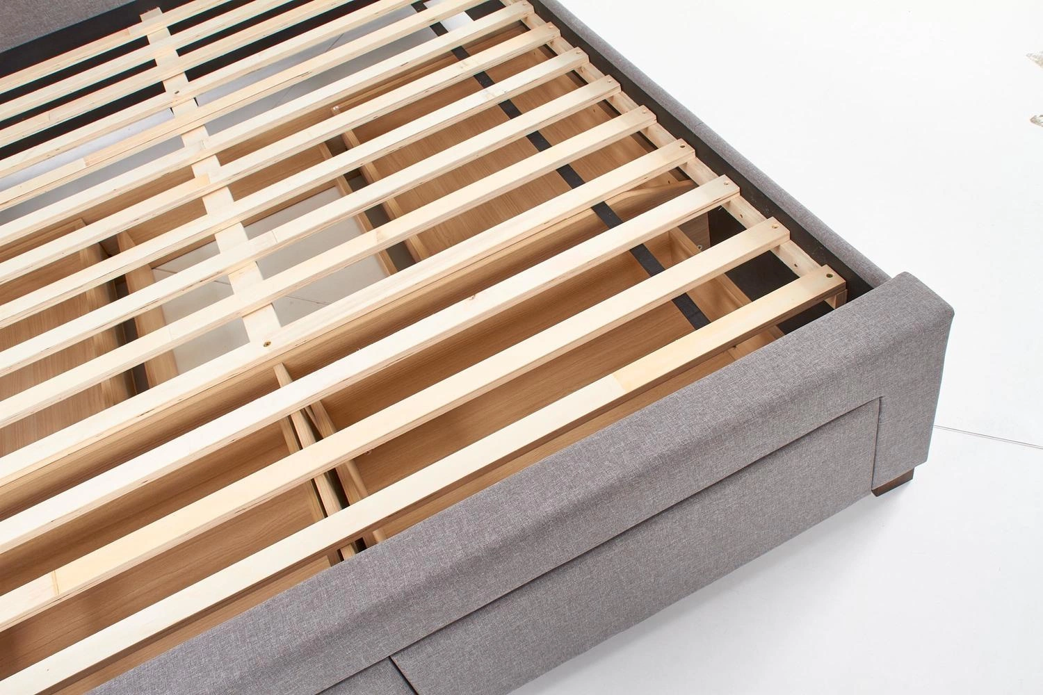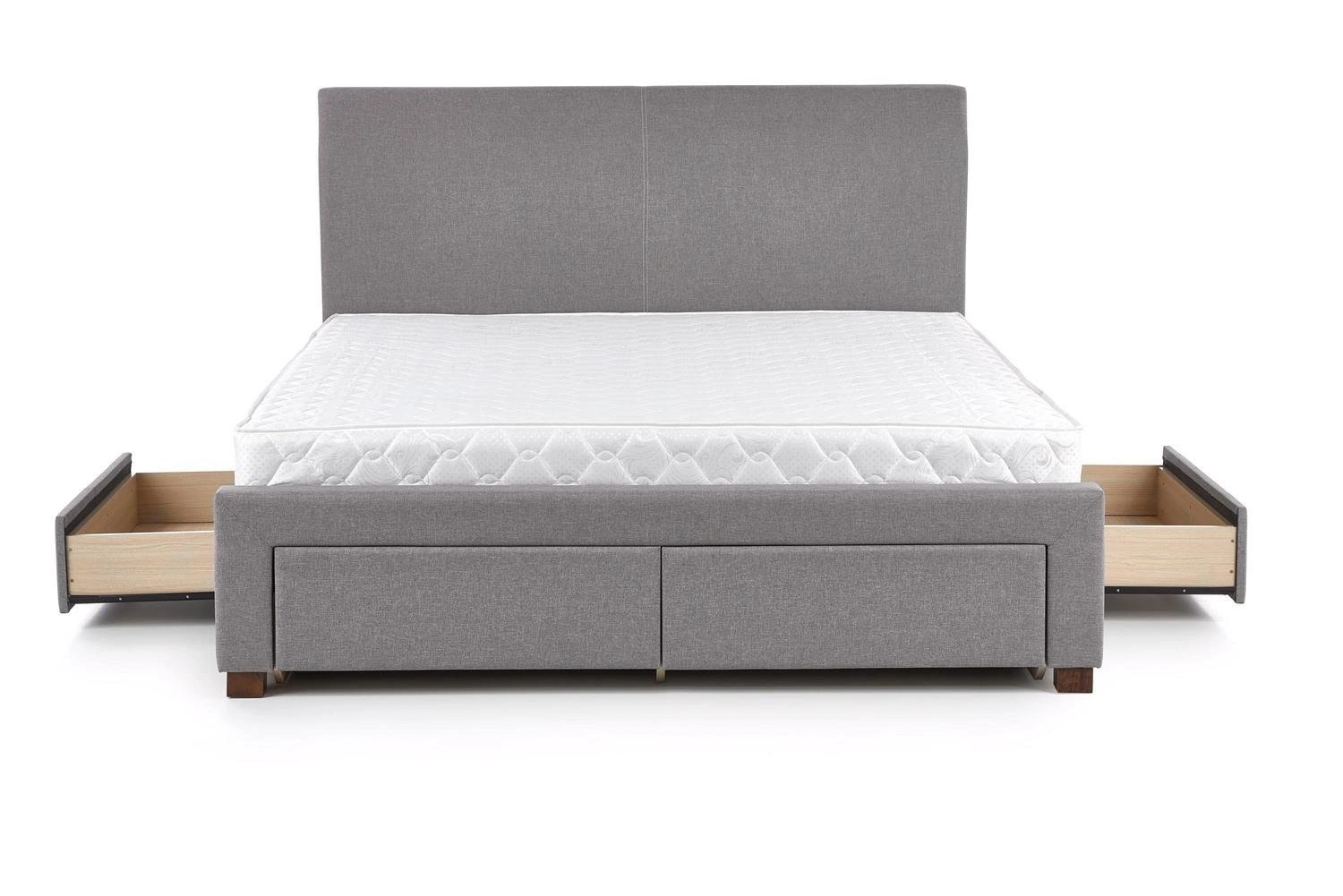 Łóżko dwuosobowe Diana 180x200 z szufladami to doskonała propozycja do głównej sypialni. Dzięki przemyślanemu projektowi cztery pojemne szuflady pozwalają łatwo uporządkować pościel, koce czy sezonową odzież. W ten sposób oszczędzasz miejsce w szafie i zyskujesz szybki dostęp do najpotrzebniejszych rzeczy, zachowując w sypialni harmonię i porządek. To praktyczne rozwiązanie dla osób ceniących funkcjonalność i estetykę w jednym meblu.