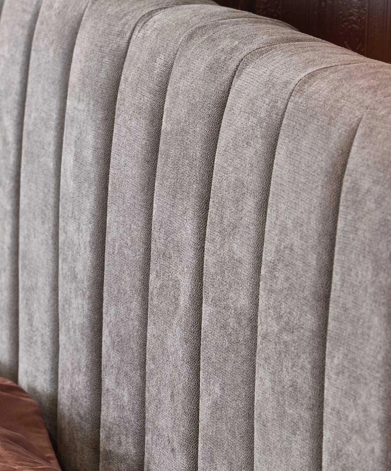 Łóżko tapicerowane Franco wyróżnia się prostą, geometryczną linią oraz subtelnymi przeszyciami na zagłówku. Osadzone na czterech stabilnych, metalowych nogach, prezentuje się lekko i elegancko, nie przytłaczając przestrzeni. To łóżko nowoczesne, które doskonale sprawdzi się zarówno w minimalistycznych aranżacjach, jak i przytulnych, skandynawskich wnętrzach. Popielaty kolor tapicerki jest ponadczasowy i łatwy do zestawienia z innymi kolorami oraz fakturami, co daje dużą dowolność w urządzaniu wymarzonej sypialni.