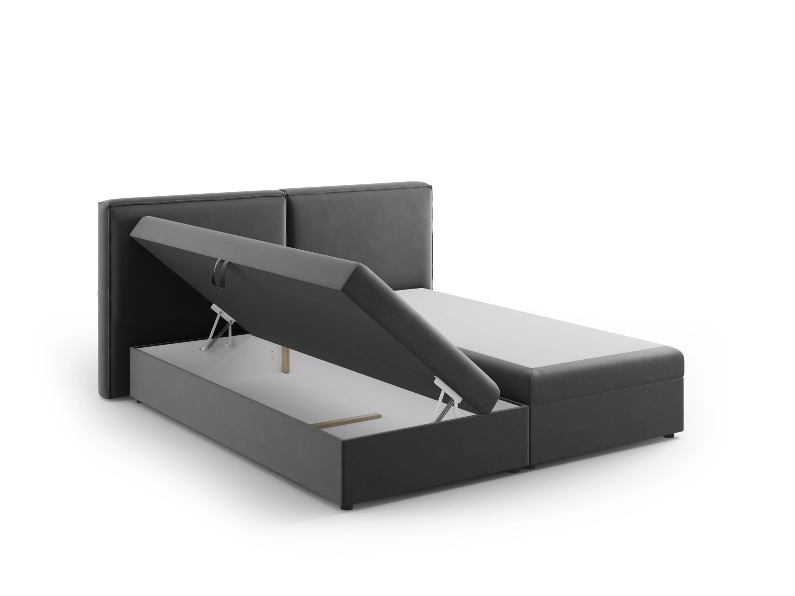 Łóżko Jodie 140x200 to nowoczesne, szare łóżko tapicerowane welwetem, które doskonale wpisuje się w styl glamour i zapewnia komfortowy sen w każdej sypialni. Wyróżnia się przestronną powierzchnią spania 140x200 cm, aksamitnym wykończeniem oraz praktycznym pojemnikiem na pościel, pozwalającym na wygodne przechowywanie. Solidna konstrukcja oparta na drewnie sosnowym oraz w zestawie stelaż to gwarancja stabilności i trwałości, a wysokie, miękkie zagłowie podnosi wygodę codziennego użytkowania.