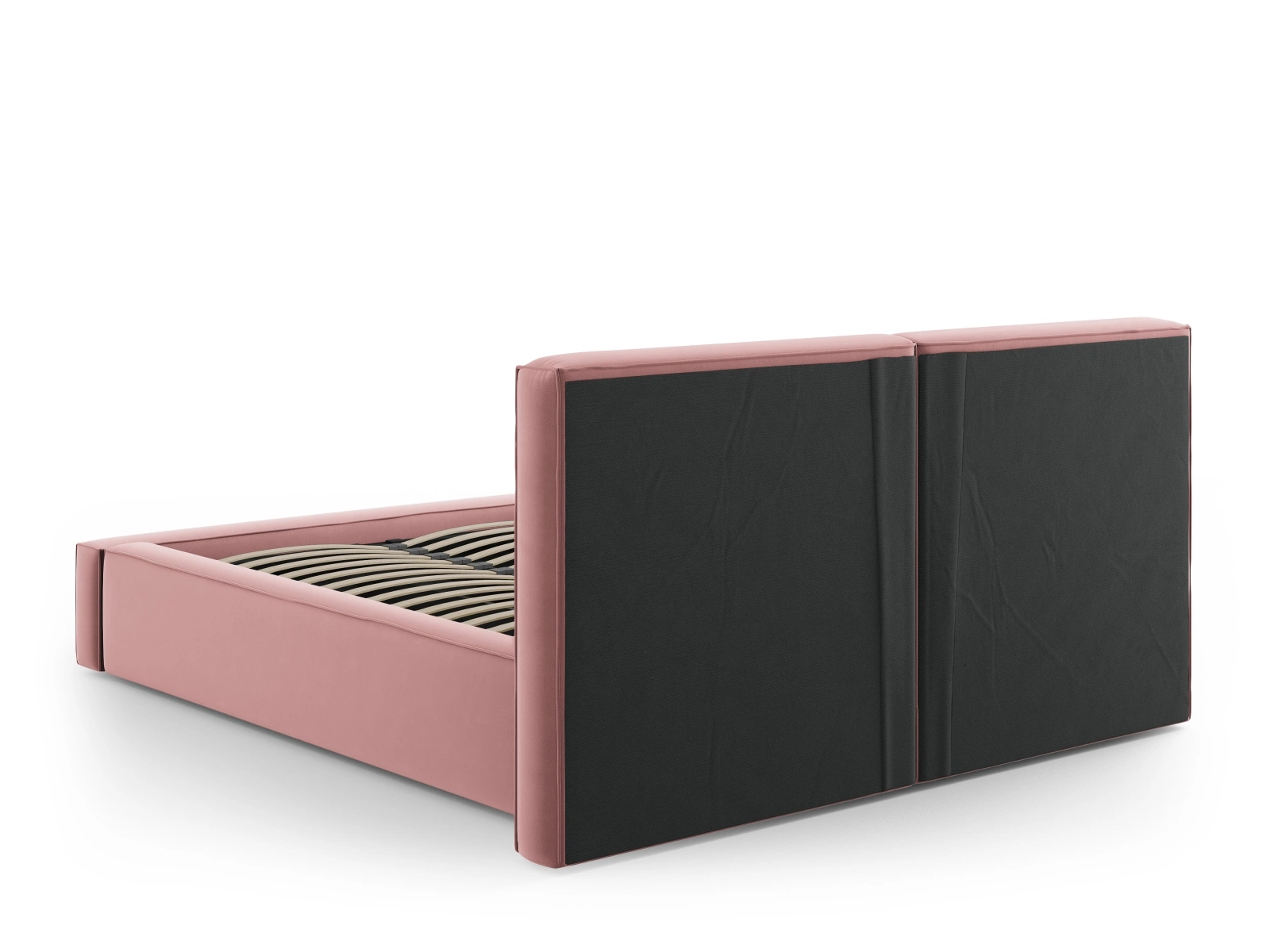 Łóżko Jodie II to różowe łóżko tapicerowane o powierzchni spania 200x200 cm, które zachwyca aksamitnym wykończeniem oraz stylowym zagłówkiem. Model ten wyróżnia się pojemnym schowkiem na pościel, solidną konstrukcją z drewna i metalu oraz nowoczesną estetyką glamour. Doskonale sprawdzi się w sypialni, stając się centralnym punktem aranżacji i oferując komfort na najwyższym poziomie.