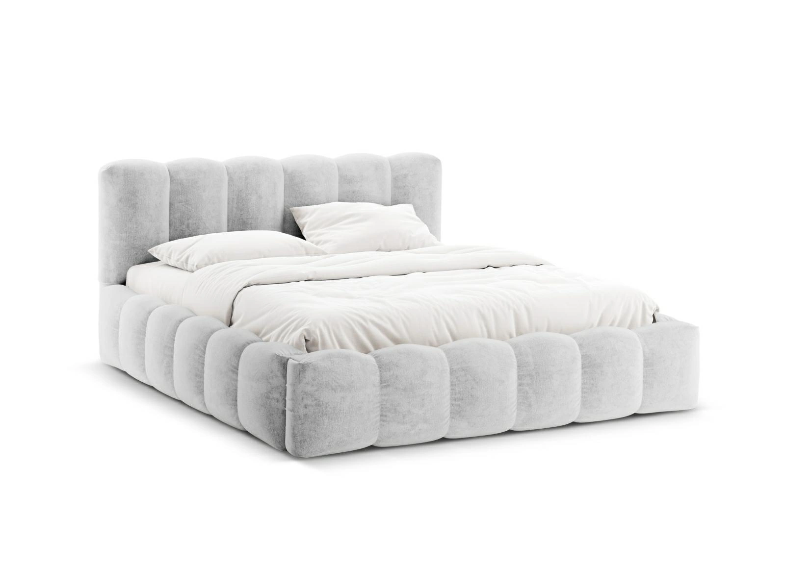 Łóżko Lupine zachwyca minimalistyczną sylwetką i subtelnym, srebrzystoszarym odcieniem, wnoszącym do wnętrza świeżość i klasę. Tapicerowane wezgłowie, wykończone miękką tkaniną chenille, nie tylko przyciąga wzrok, ale także umożliwia wygodne oparcie podczas wieczornego czytania lub oglądania filmów. Niskie, delikatne nóżki optycznie powiększają przestrzeń, podkreślając nowoczesny charakter łóżka. Ten model idealnie wpisuje się w aranżacje utrzymane w stylu nowoczesnym i glamour, tworząc efektowną bazę dla sypialni o wysokim standardzie.