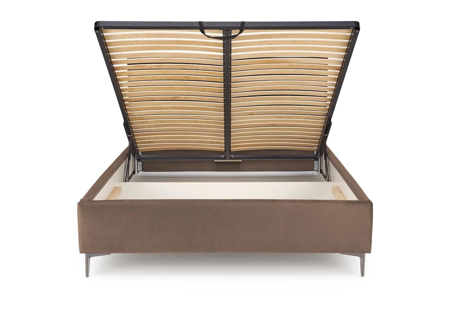 Jedną z największych zalet tego modelu jest pojemny schowek na pościel, ukryty pod stelażem. Dzięki temu zyskujesz dodatkowe miejsce do przechowywania kołder, poduszek czy sezonowych tekstyliów, co pozwala łatwo utrzymać porządek. Wygodny mechanizm unoszenia materaca sprawia, że dostęp do schowka jest szybki i bezproblemowy.