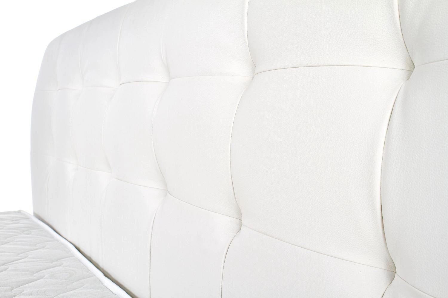 Łóżko tapicerowane Samur 160x200 białe to nowoczesny mebel do sypialni, który łączy w sobie elegancję, komfort i solidność wykonania. Zostało zaprojektowane z myślą o dwuosobowym użytkowaniu, oferując dużą powierzchnię spania 160x200 cm. Wyróżnia je efektowny, pikowany zagłówek oraz wysokiej jakości tapicerka ze skóry ekologicznej w odcieniu czystej bieli, osadzone na stabilnej podstawie z litego drewna.