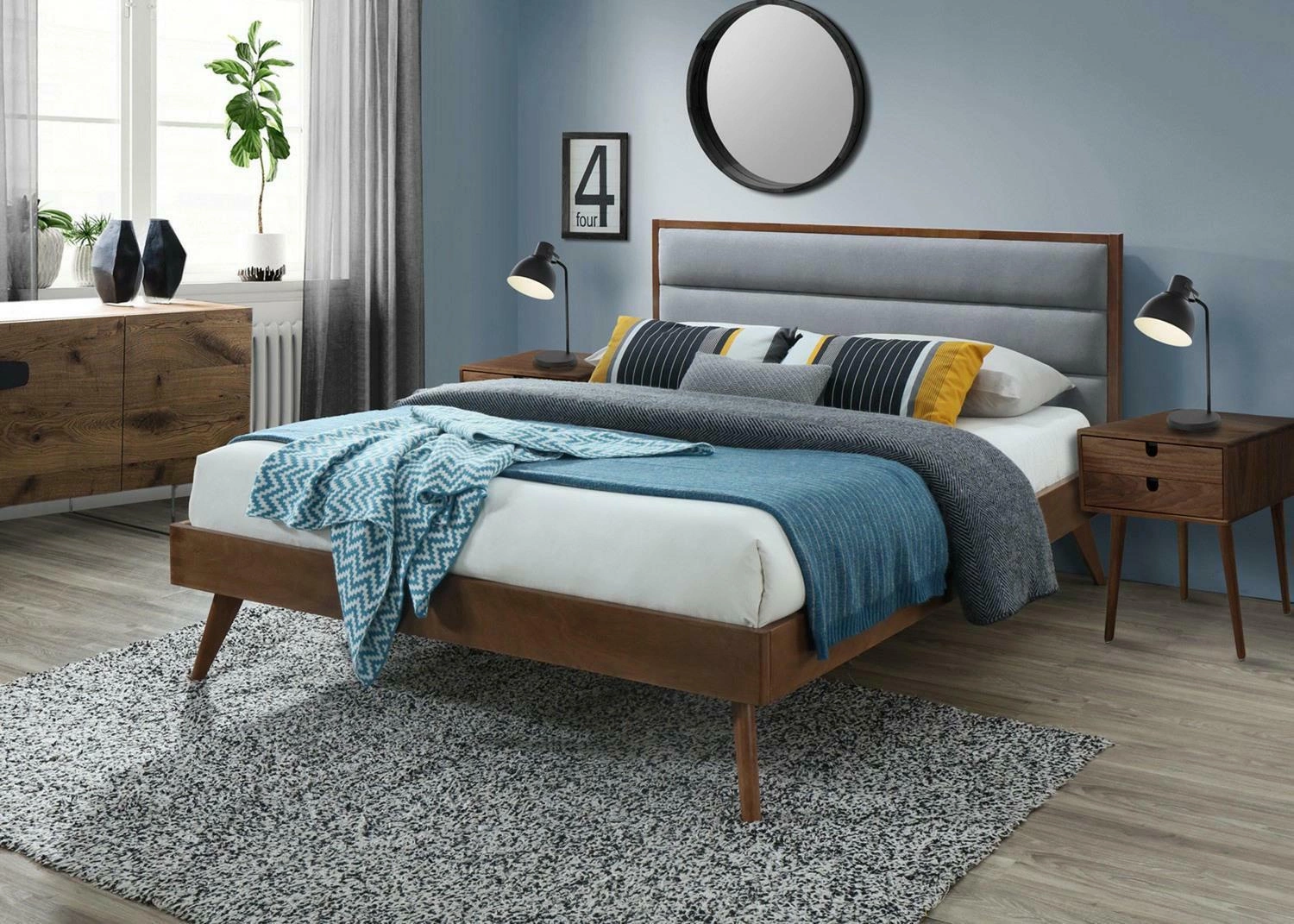 Łóżko Dylan to model zaprojektowany z myślą o osobach, które cenią minimalistyczny, współczesny design. Prosta, geometryczna forma w połączeniu z subtelnym, szarym tapicerowaniem i detalami w naturalnym orzechu tworzy harmonijną całość, która podkreśli charakter nowoczesnej aranżacji wnętrza. Dzięki uniwersalnym wymiarom 160x200 cm, łóżko dwuosobowe sprawdzi się zarówno w przestronnych, jak i mniejszych sypialniach, gwarantując wygodę codziennego użytkowania.