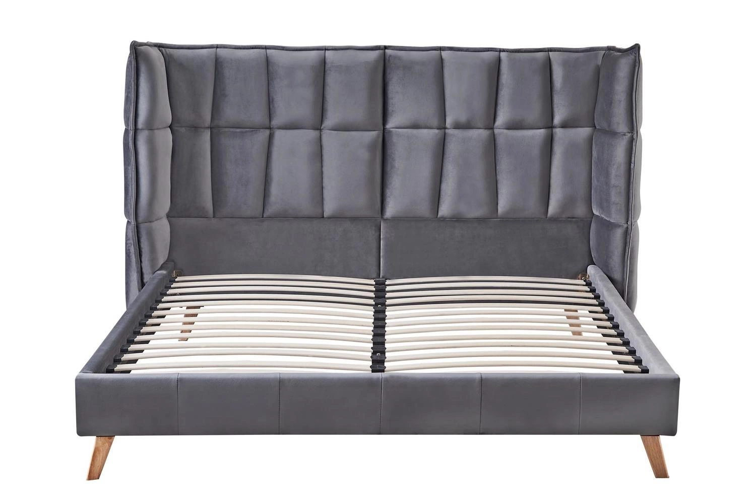 Łóżko Scand 160x200 szare welurowe z zagłówkiem to doskonały wybór dla osób ceniących nowoczesny styl, wygodę oraz wysoką jakość wykonania. Spraw, by Twoja sypialnia stała się miejscem prawdziwego odpoczynku i estetycznej harmonii.