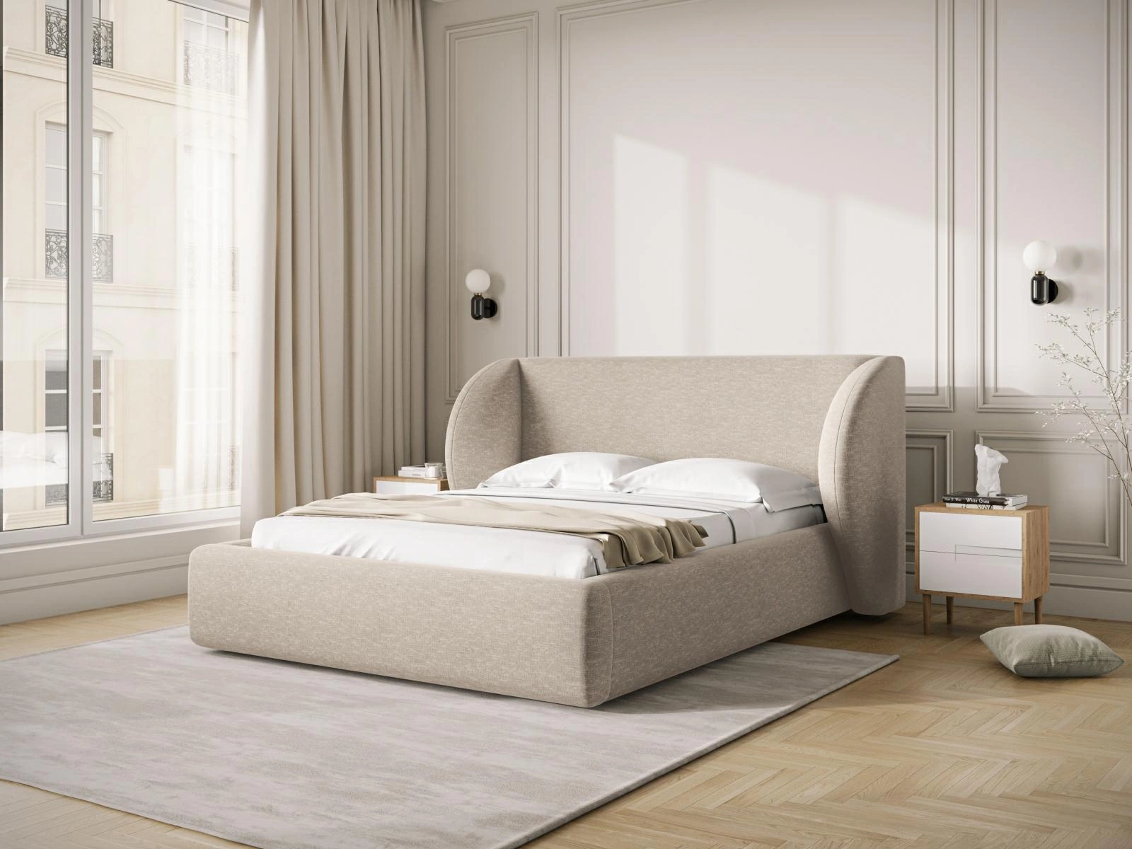 Łóżko Miley II zachwyca subtelną, beżową tapicerką o przyjemnej w dotyku strukturze, która doskonale komponuje się z jasnymi i eleganckimi sypialniami. Nowoczesna linia oraz niskie nóżki (2,5 cm) sprawiają, że łóżko optycznie powiększa przestrzeń i dodaje wnętrzu lekkości. Beżowy kolor jest uniwersalny – wprowadza spokój i harmonię, pasując zarówno do aranżacji minimalistycznych, jak i glamour.