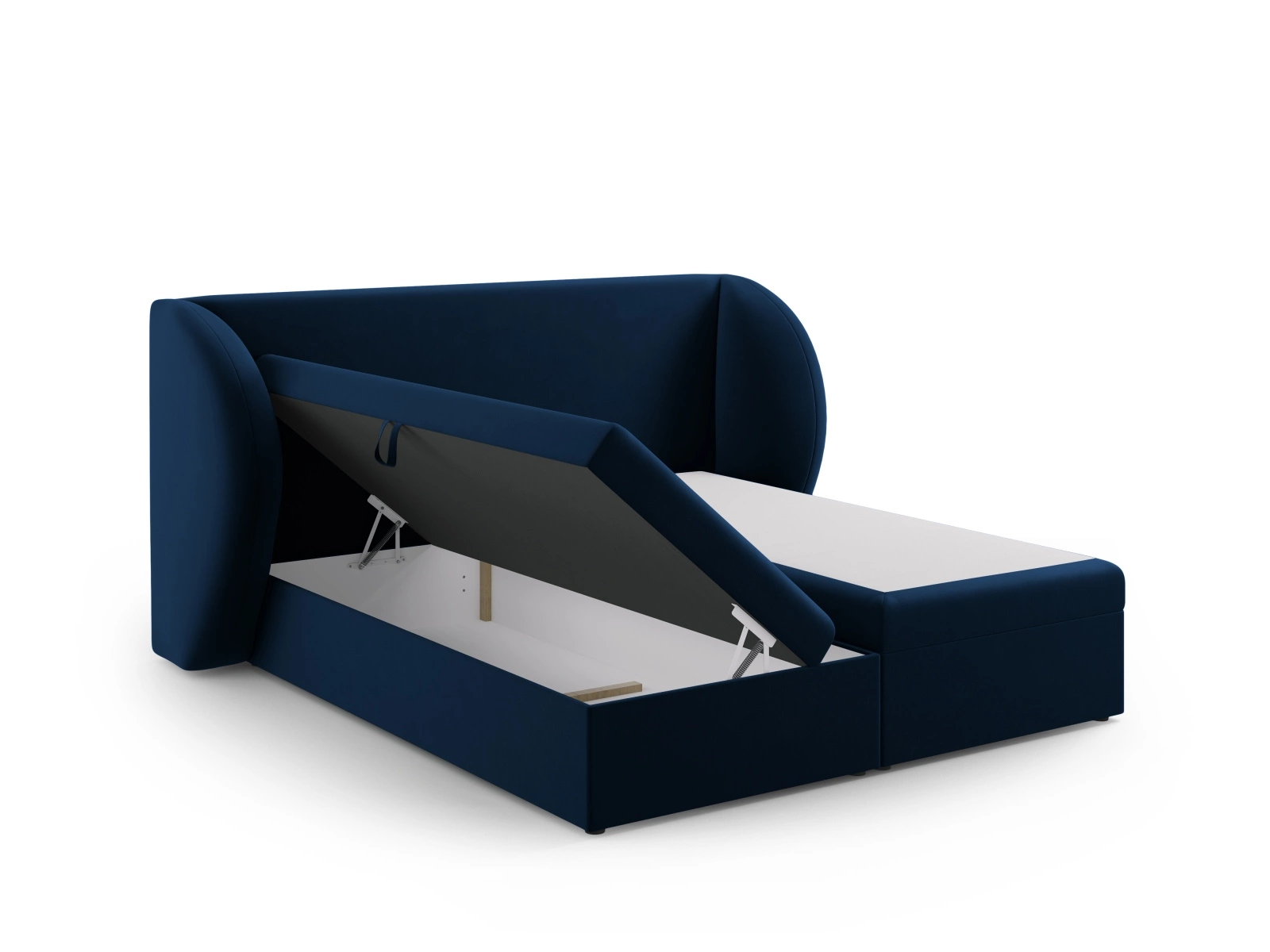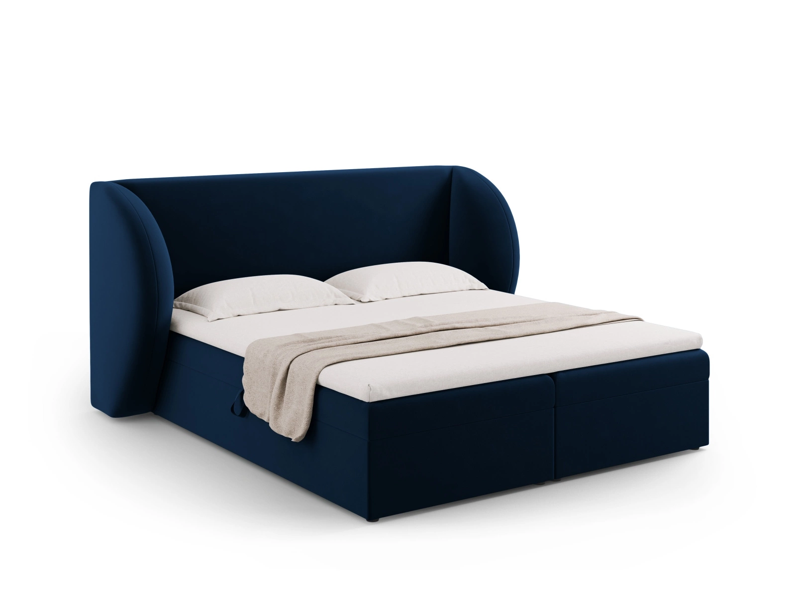 Łóżko Miley zostało zaprojektowane z myślą o miłośnikach elegancji i wyrafinowanego stylu glamour. Niebieska tapicerka welurowa nadaje wnętrzu wyjątkowego charakteru i sprawia, że łóżko staje się centralnym punktem sypialni. Delikatnie połyskujący materiał pięknie prezentuje się zarówno w świetle dziennym, jak i przy sztucznym oświetleniu, podkreślając luksusowy, a zarazem nowoczesny design.