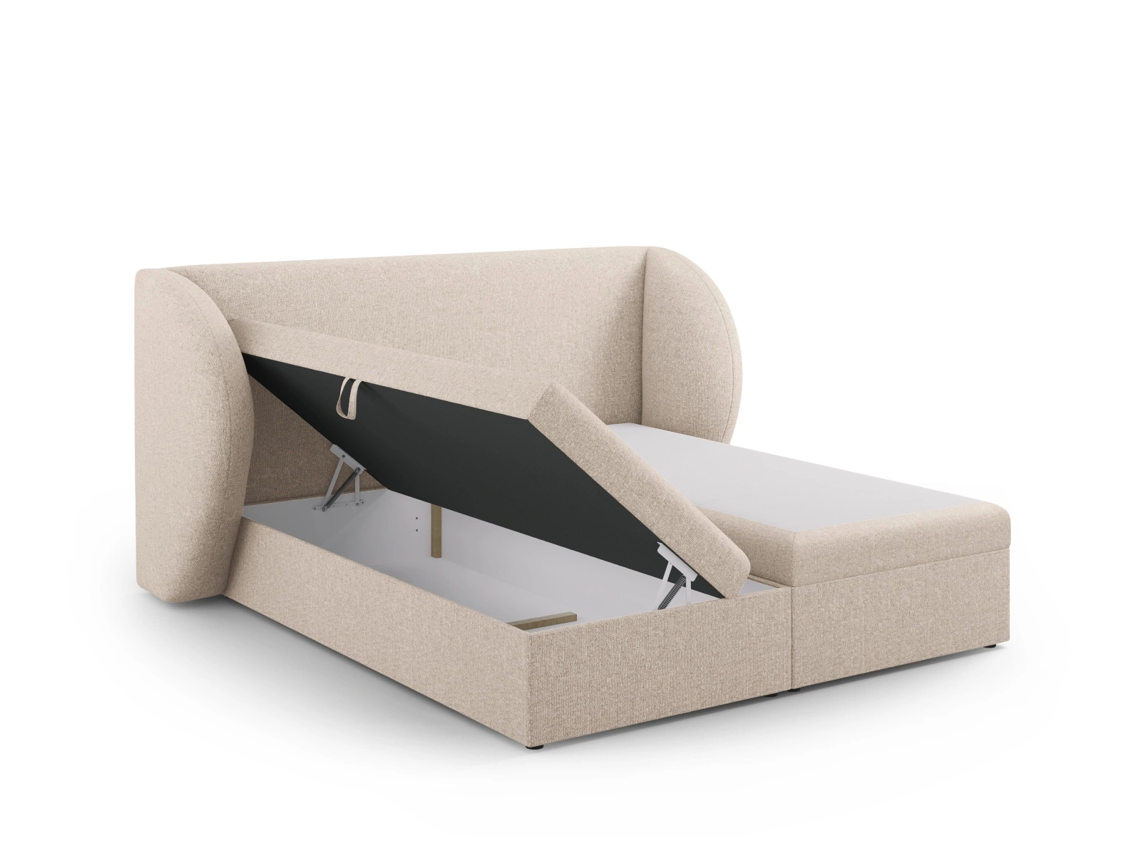 Przemyślany pojemnik na pościel, dyskretnie schowany pod ramą łóżka, pozwala w łatwy sposób uporządkować koce, poduszki czy zapasową pościel. Dzięki temu zyskujesz dodatkową przestrzeń do przechowywania bez kompromisów dla estetyki wnętrza. Użytkowanie pojemnika jest wygodne, a lekko unoszący się stelaż pozwala łatwo dostać się do schowka nawet codziennie.