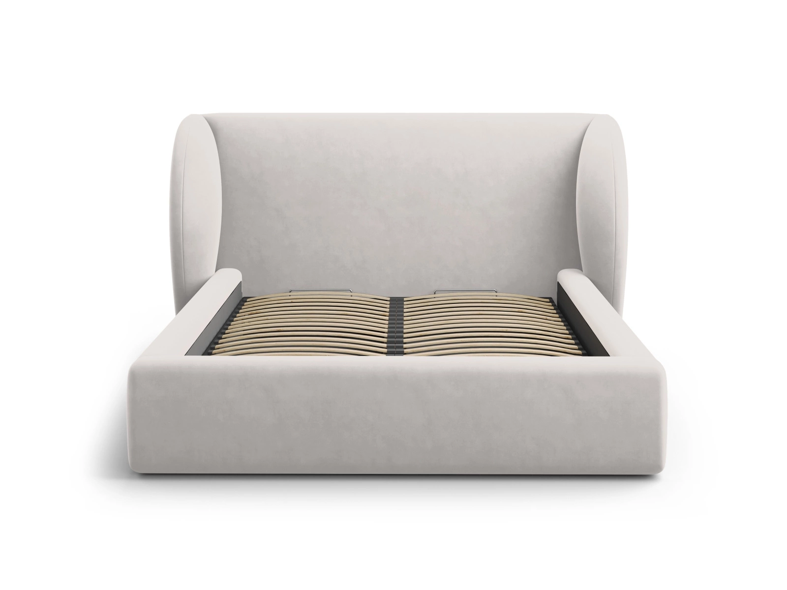 Łóżko tapicerowane Miley II to stylowe łóżko 140x200 cm w szarym kolorze, zaprojektowane z myślą o nowoczesnych sypialniach w stylu glamour. Wyróżnia je eleganckie, przyjemne w dotyku tapicerowanie oraz praktyczny pojemnik na pościel, który zwiększa funkcjonalność mebla. Solidna konstrukcja, wygodny stelaż w zestawie oraz dekoracyjne detale sprawiają, że to łóżko dwuosobowe doskonale łączy komfort codziennego użytkowania z wyrafinowanym wyglądem.
