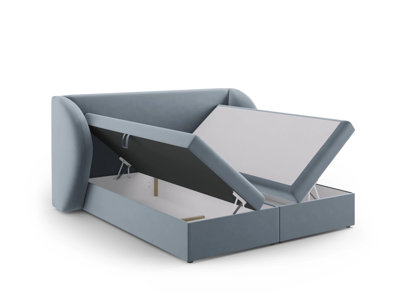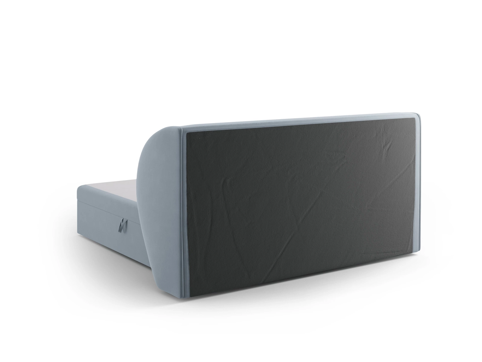 Łóżko Miley to propozycja dla osób, które cenią wyrafinowany design i praktyczne rozwiązania w jednym. Tapicerowane przyjemnym w dotyku, niebieskim welurem, staje się wyrazistą ozdobą każdej nowoczesnej sypialni. Szeroki, dekoracyjny zagłówek nie tylko zdobi, ale także zapewnia wygodne oparcie podczas czytania lub wieczornego relaksu. Dzięki stylowi glamour łóżko Miley świetnie komponuje się z jasnymi, minimalistycznymi aranżacjami oraz błyszczącymi dodatkami.
