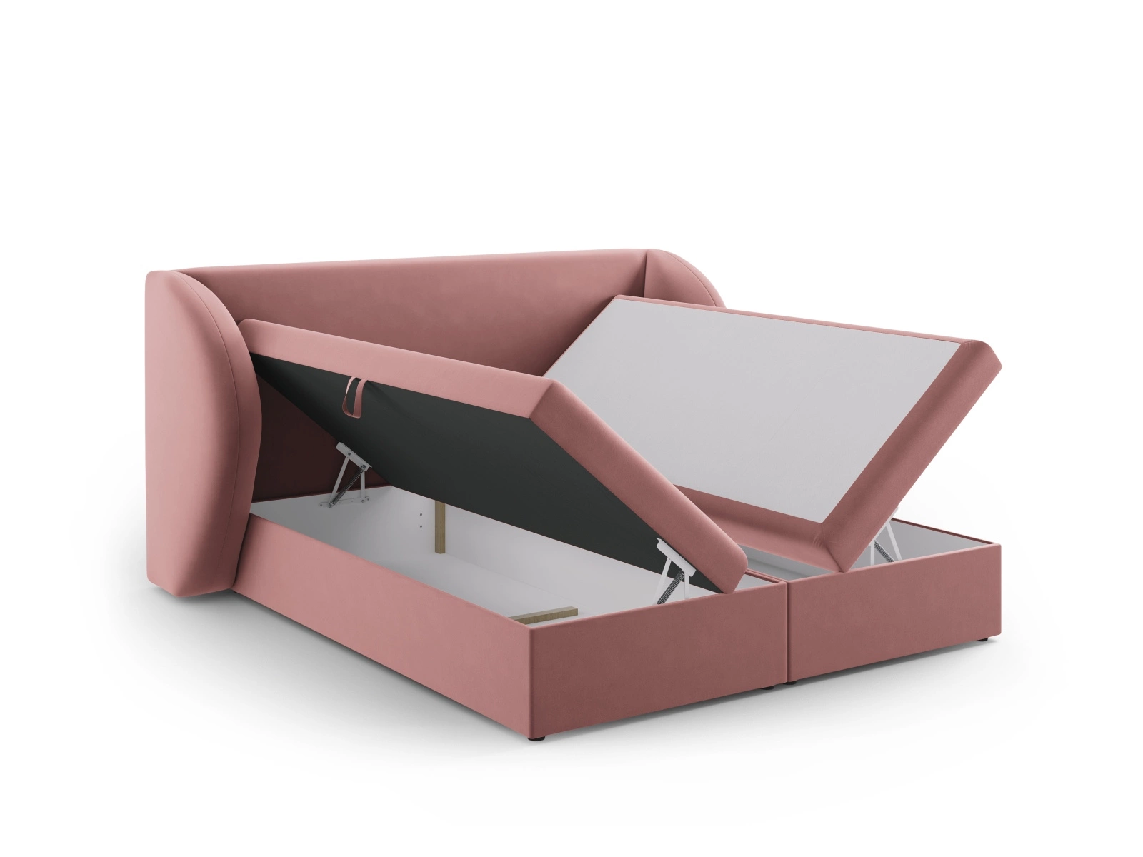 Łóżko tapicerowane Miley różowe 160x200 z pojemnikiem to połączenie wyrafinowanego stylu glamour z praktycznymi rozwiązaniami, które odmieniają każdą sypialnię. Model zachwyca eleganckim, welurowym obiciem w różowym kolorze, dużą powierzchnią spania 160x200 cm oraz pojemnym schowkiem na pościel. Stabilny stelaż i dopracowane detale sprawiają, że to łóżko dwuosobowe nie tylko podkreśla charakter wnętrza, ale też zapewnia codzienny komfort użytkowania.
