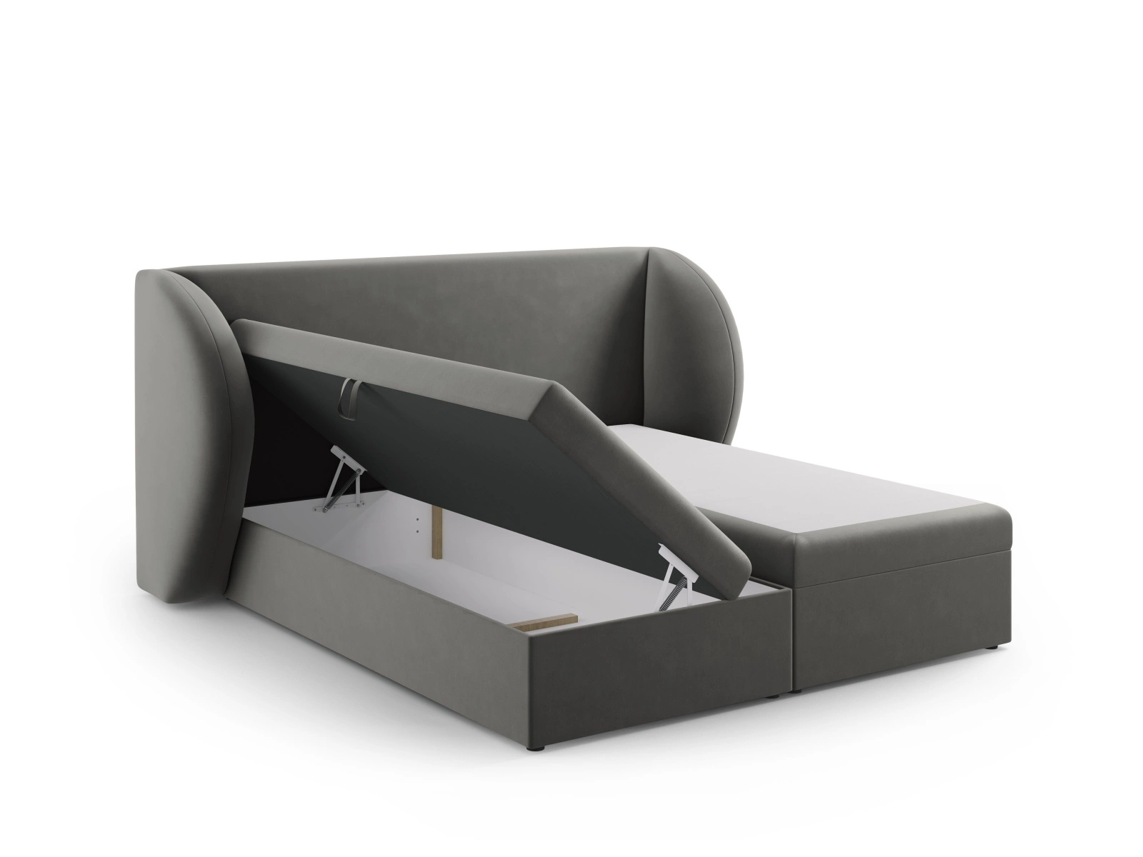 Łóżko Miley wyróżnia się wyrafinowanym, nowoczesnym wzornictwem z subtelnymi akcentami glamour. Szare, welurowe obicie jest nie tylko przyjemne w dotyku, ale również efektownie odbija światło, dodając wnętrzu głębi i elegancji. Wysokie wezgłowie o wysokości 100 cm zapewnia wygodne oparcie podczas czytania czy relaksu, a całość prezentuje się niezwykle stylowo w przestrzeni sypialni. To łóżko tapicerowane stanie się ozdobą każdej aranżacji, wprowadzając do niej nutę luksusu.